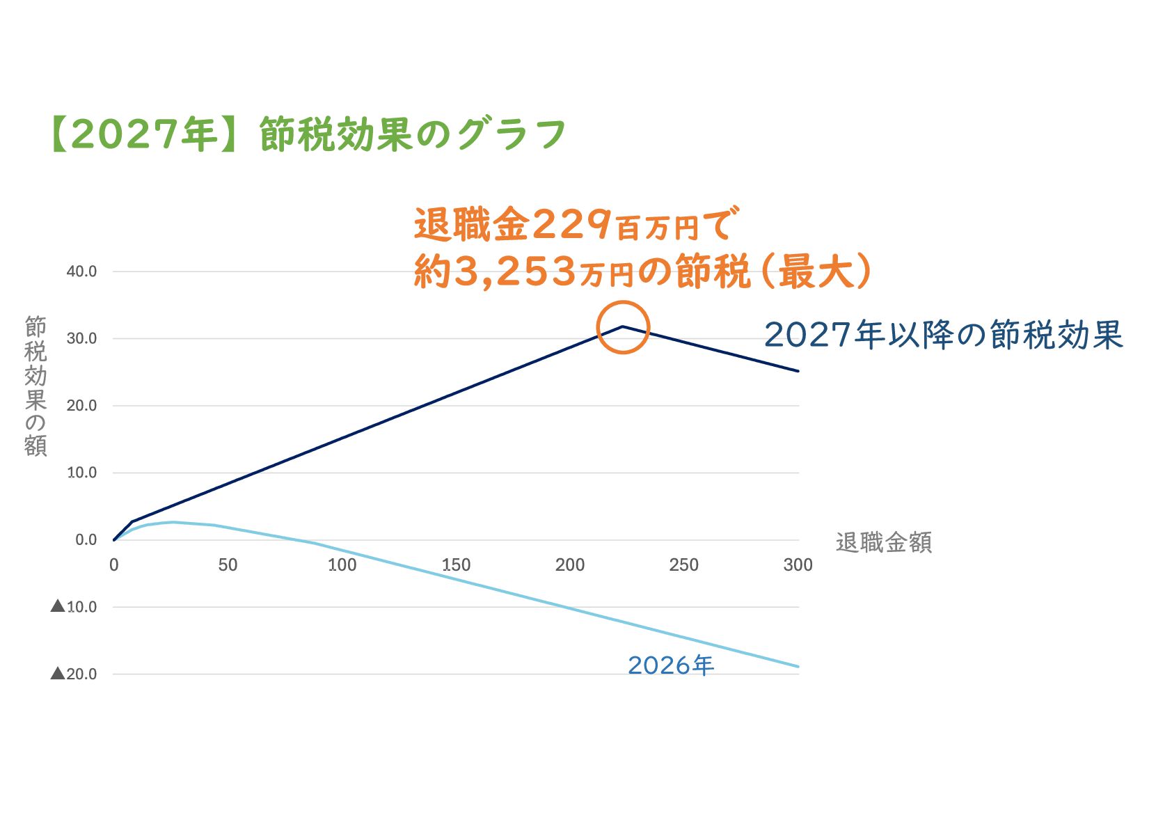 退職金には「2分の1課税」の優遇措置があるため、2027年以降は節税効果が劇的に高まります 。