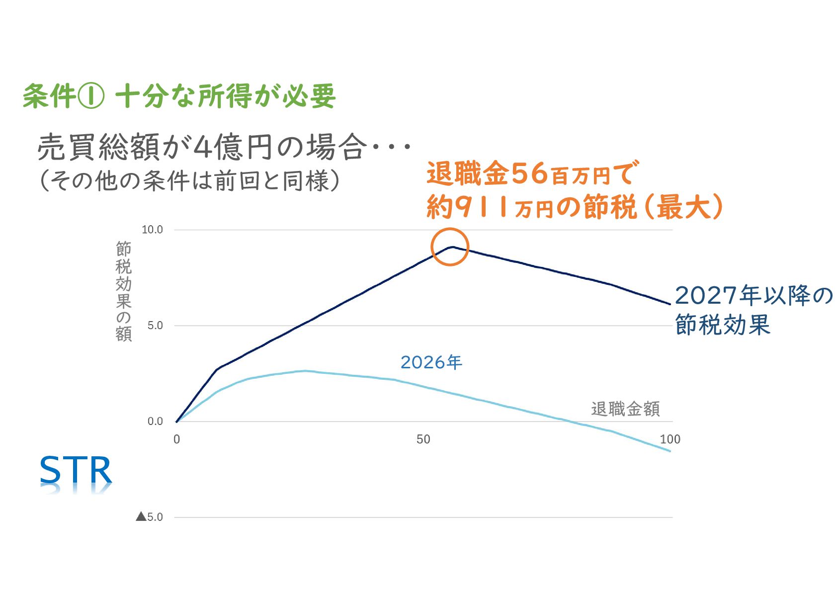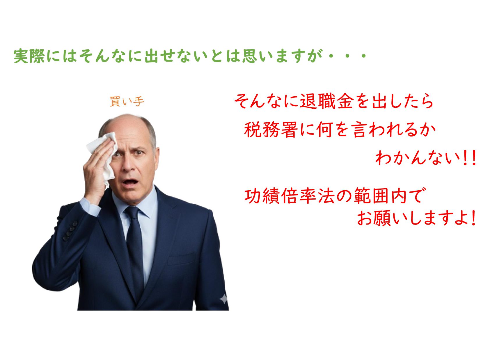 Win-Winの関係: 買い手側も退職金を損金算入できるため、価格交渉の材料にもなります 。
