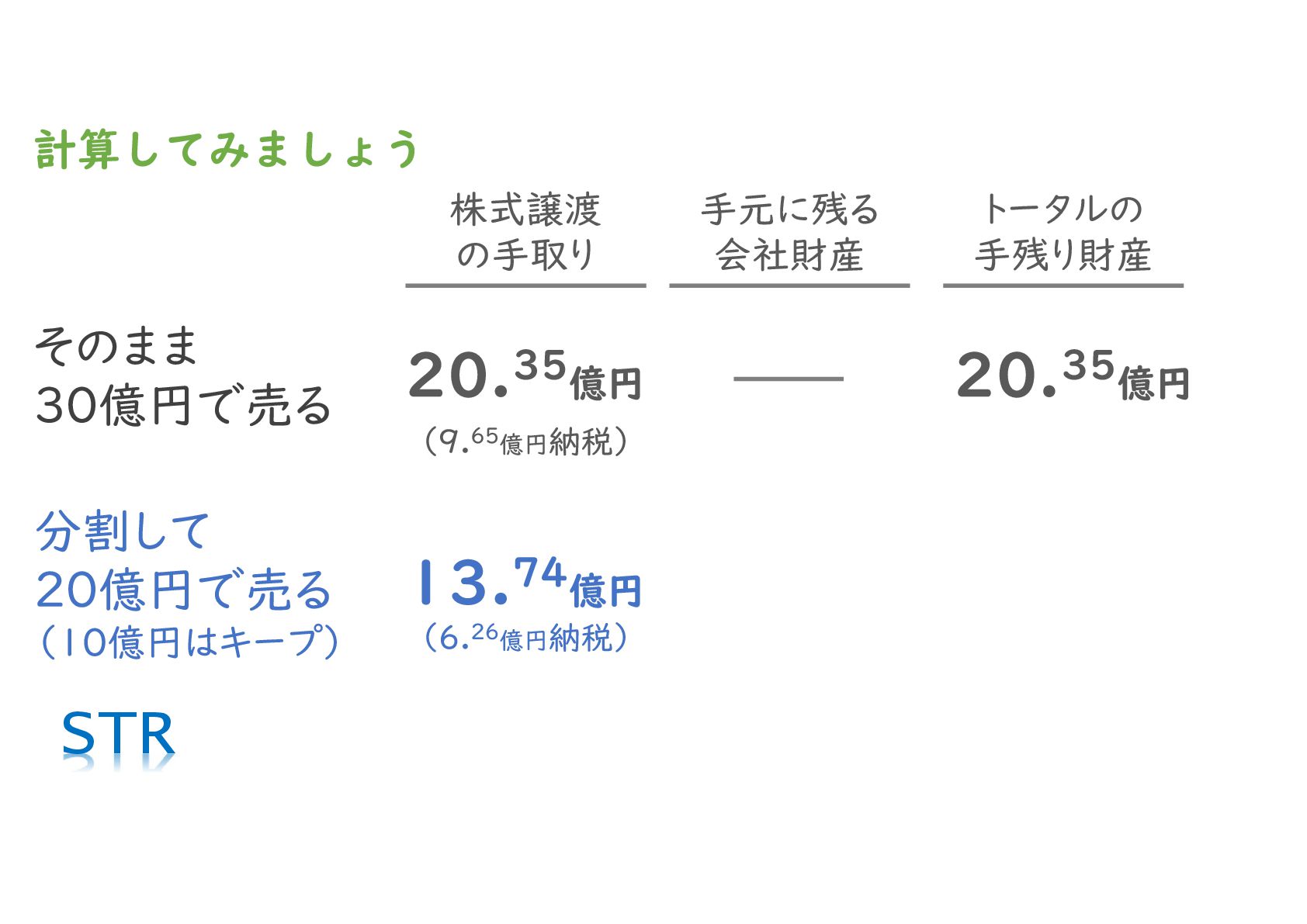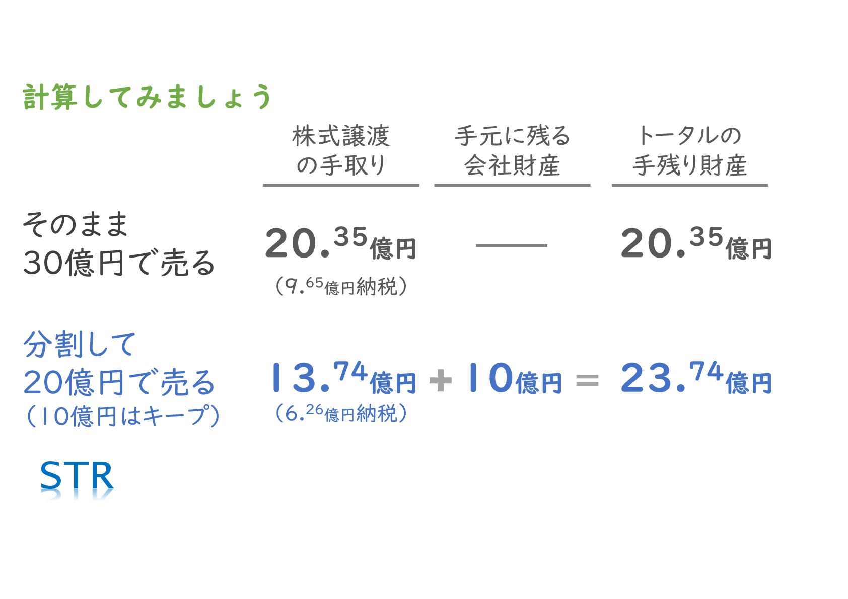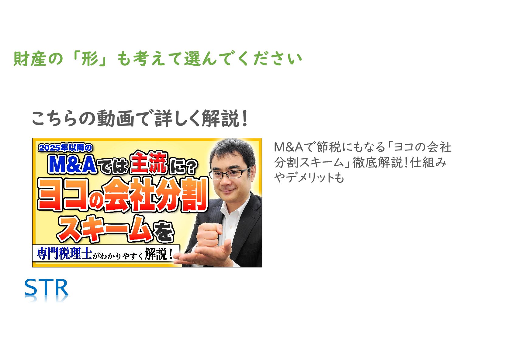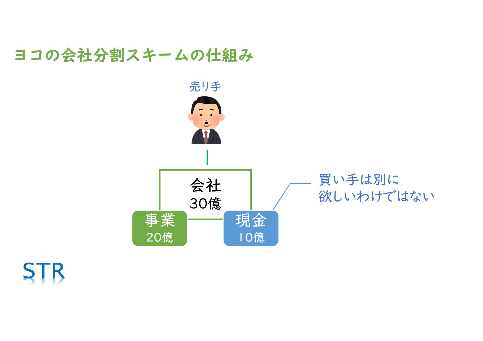 売却対象から余剰資金などを切り離すことで、課税対象となる譲渡対価そのものを圧縮する手法です 。