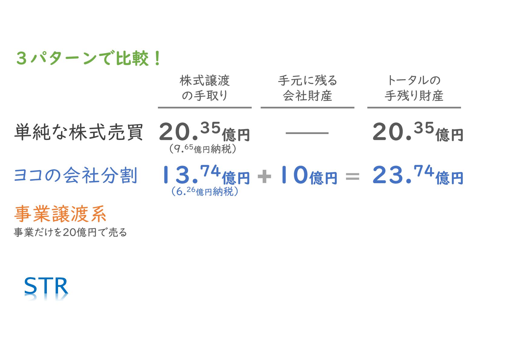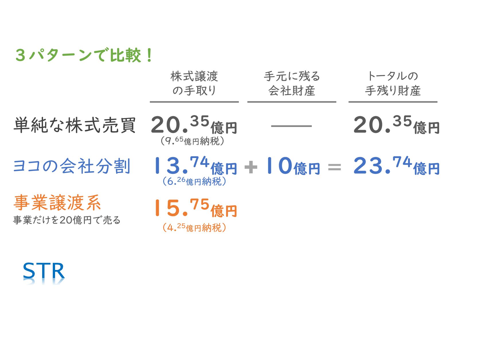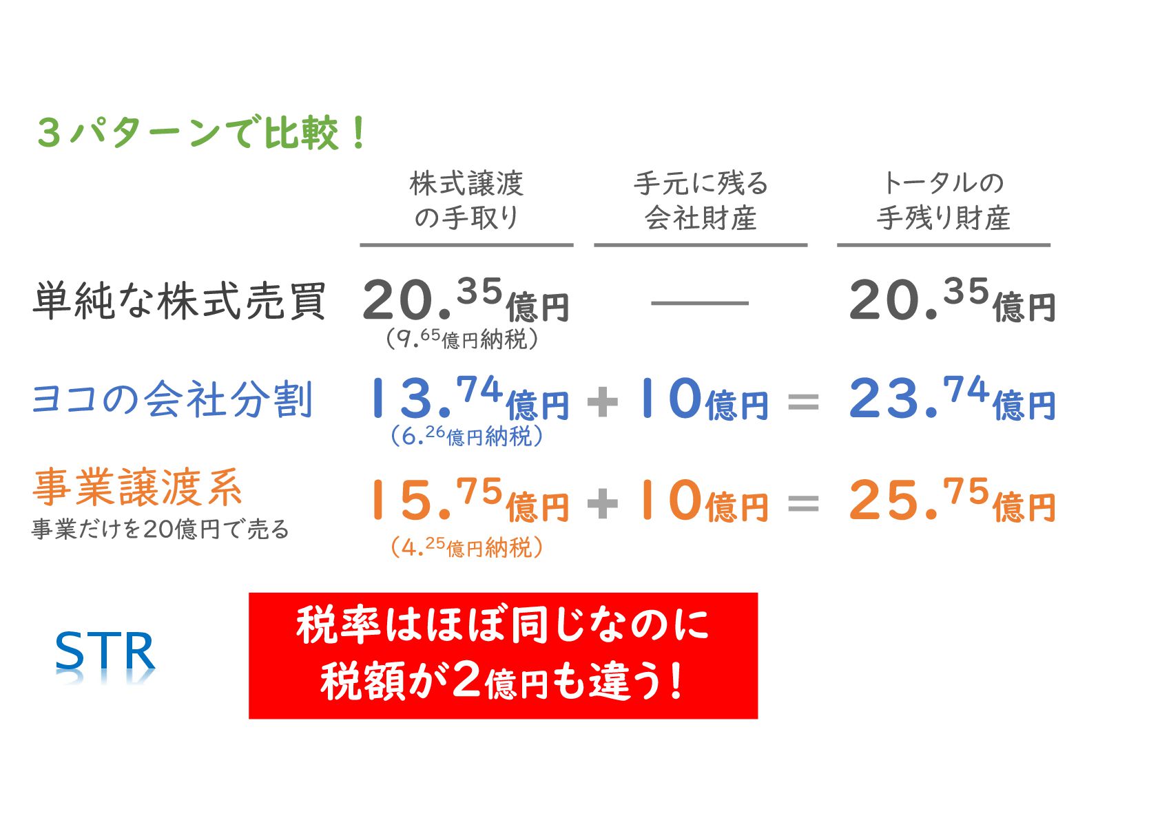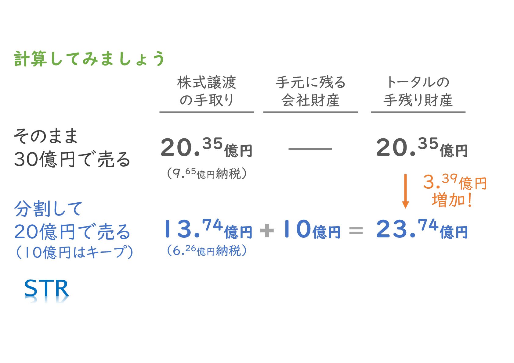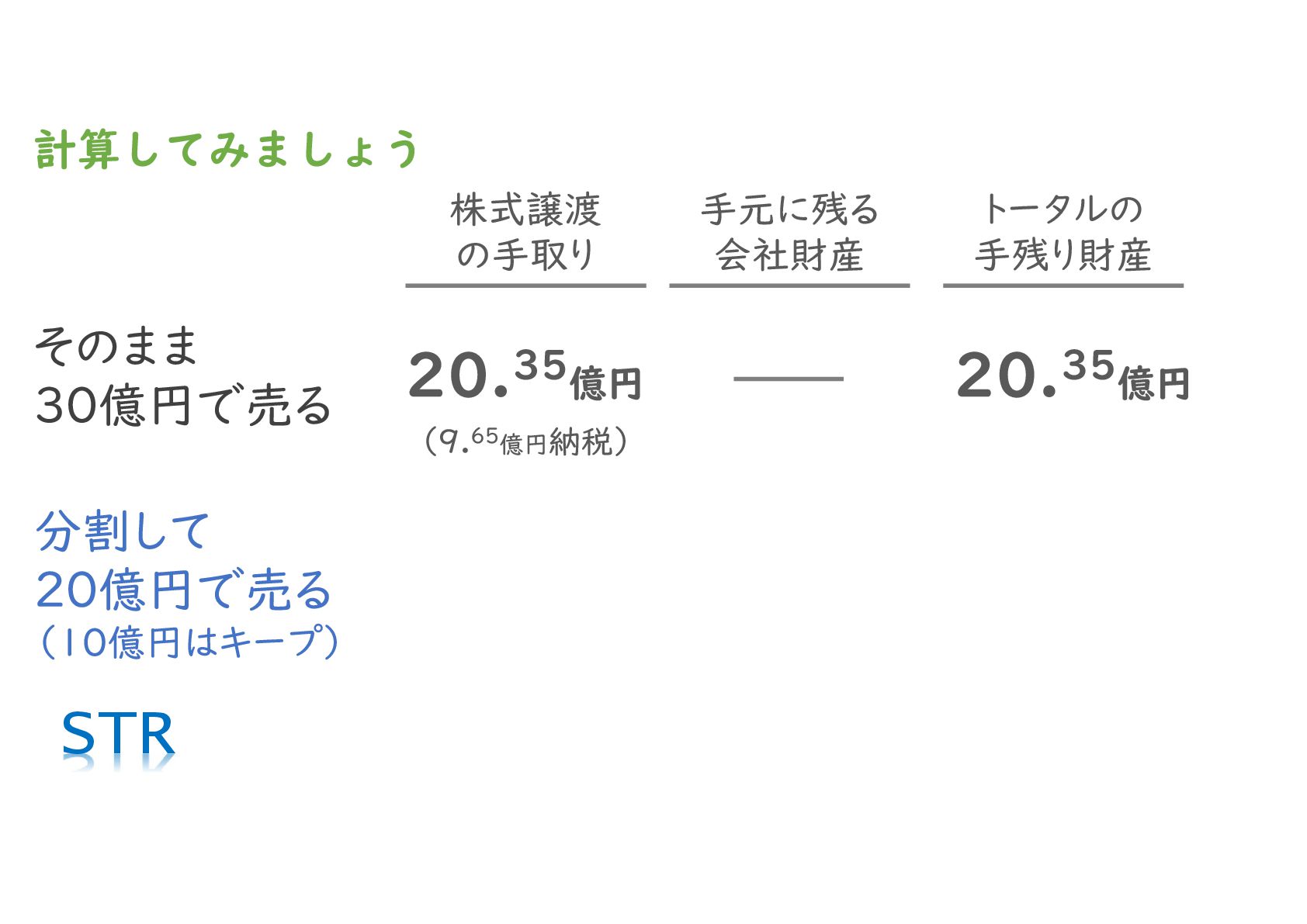 売却対象から余剰資金などを切り離すことで、課税対象となる譲渡対価そのものを圧縮する手法です 。