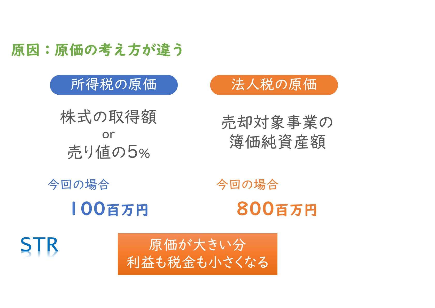 原価のメリット: 株式譲渡の原価(売値の5%)よりも、事業の簿価純資産の方が大きい場合、事業譲渡の方が圧倒的に手残りが多くなる事例が頻発します 。