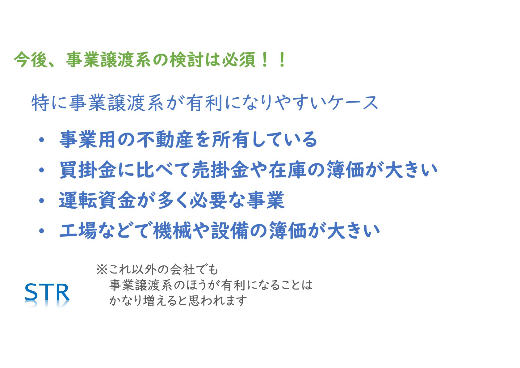 これまで敬遠されがちだった「事業譲渡」や「タテの会社分割」が、2027年以降は有力な選択肢となります 。