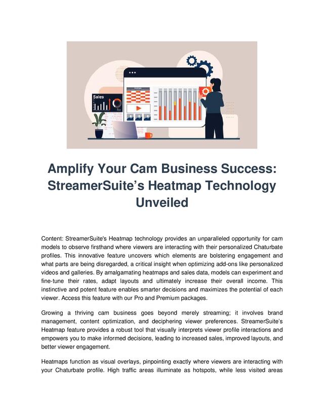 StreamerSuite's Heatmap technology offers a unique opportunity for cam models to see how viewers interact with their Chaturbate profiles. This feature identifies which elements increase engagement and which are overlooked, offering key insights for optimization. By combining heatmaps with sales data, models can adjust rates, modify layouts, and boost their income. StreamerSuite's Heatmap is more than a visual tool; it helps models make informed decisions, improving viewer engagement and increasing sales. High traffic areas on the profile are highlighted as hotspots, while less visited areas appear cooler, helping identify what works and what needs improvement. Heatmaps, traditionally used for website optimization, have been introduced to cam modeling by StreamerSuite, turning profiles into powerful tools for converting viewers into paying fans. Each interaction on the profile offers valuable insight. Heatmap data combined with sales performance can guide changes in pricing, image previews, or offer positioning to optimize earnings. While traditional analytics offer numerical data, heatmaps provide a quick, easy visualization of viewer behavior, particularly useful for maximizing supplementary offers. StreamerSuite's Heatmap technology empowers cam models to grow their businesses beyond streaming, focusing on brand management and content optimization.