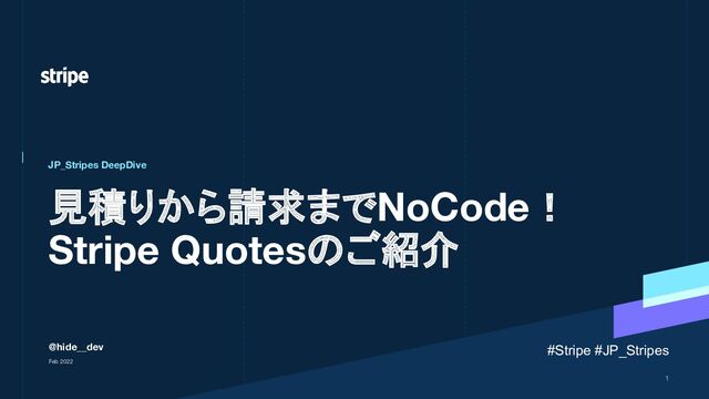 見積りから請求までNoCode! Stripe Quotesのご紹介 JP_Stripes DeepDive @hide__dev Feb 2022 1 #Stripe