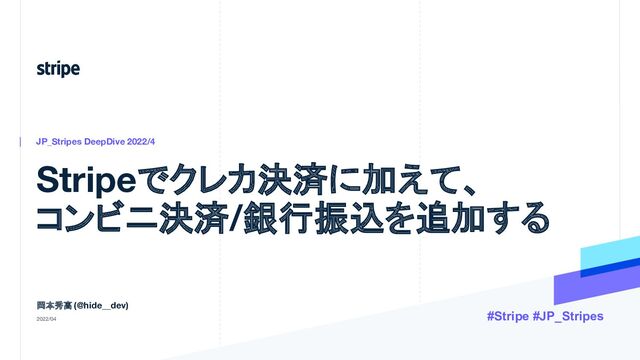 Stripeでクレカ決済に加えて、 コンビニ決済/銀行振込を追加する JP_Stripes DeepDive 2022/4 岡本秀高 (@hide__dev) 2022/04 #Stripe #JP_Stripes
