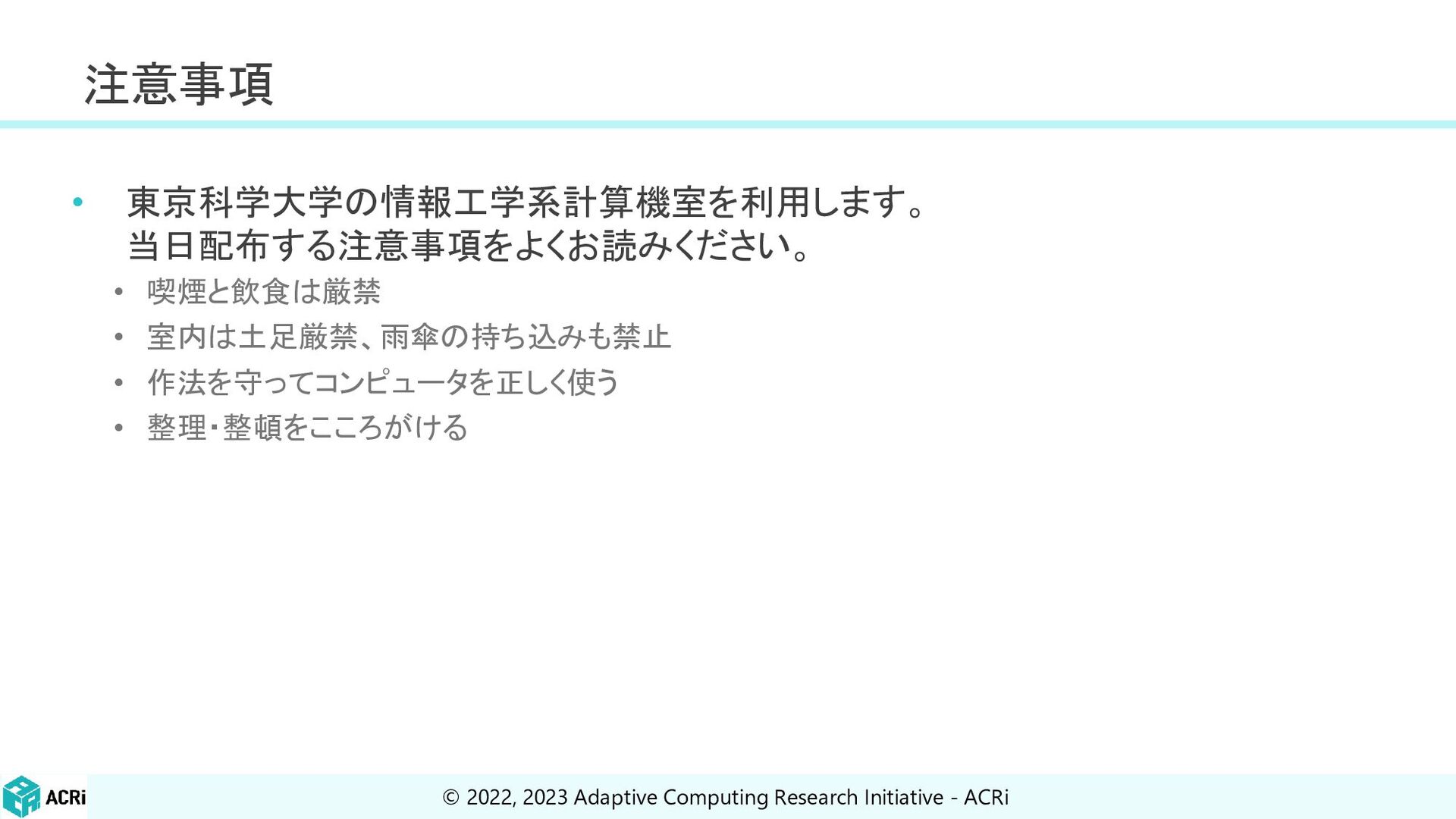 ©︎ 2022, 2023 Adaptive Computing Research Initiative - ACRi ACRiルームハンズオン: