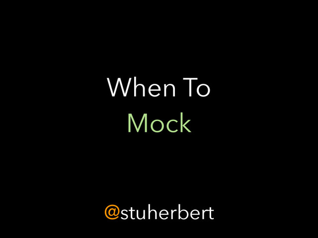 the author’s understanding of whatever is being mocked • Tests using rotted mocks will continue to pass, but the code will fail when shipped When To Mock