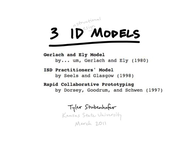 http:// www.instructionaldesign.org/models/ rapid_prototyping.html Gustafson, K.L., and Branch, R.M. (2002). Survey of instructional development models. Retrieved from Eric. ED477517.