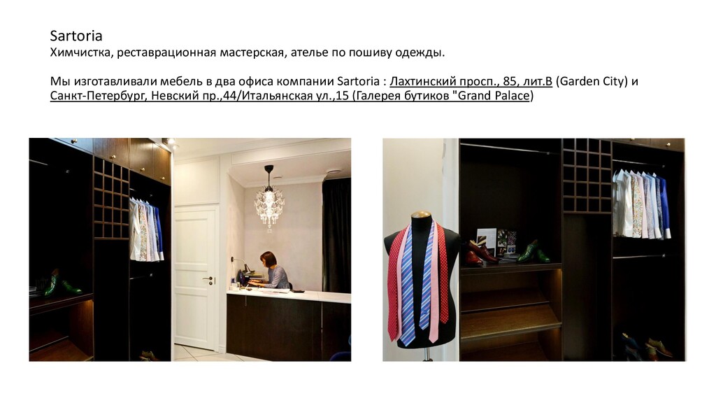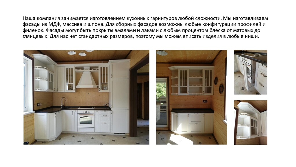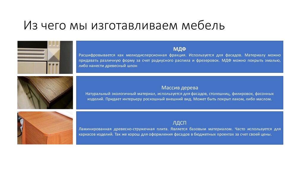 В нашем офисе имеются образцы всевозможных материалов отделки и варианты решений по фасадам и фурнитуре. Адрес офиса: Санкт-Петербург, Большой проспект ВО, д. 80, офис 306.