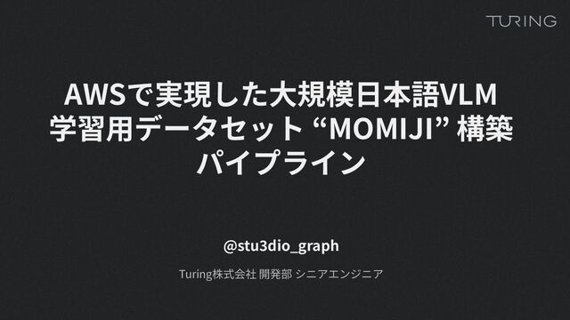 AWSで実現した⼤規模⽇本語VLM 学習⽤データセット “MOMIJI” 構築 パイプライン @stu3dio_graph Turing株式会社 開発部 シニアエンジニア