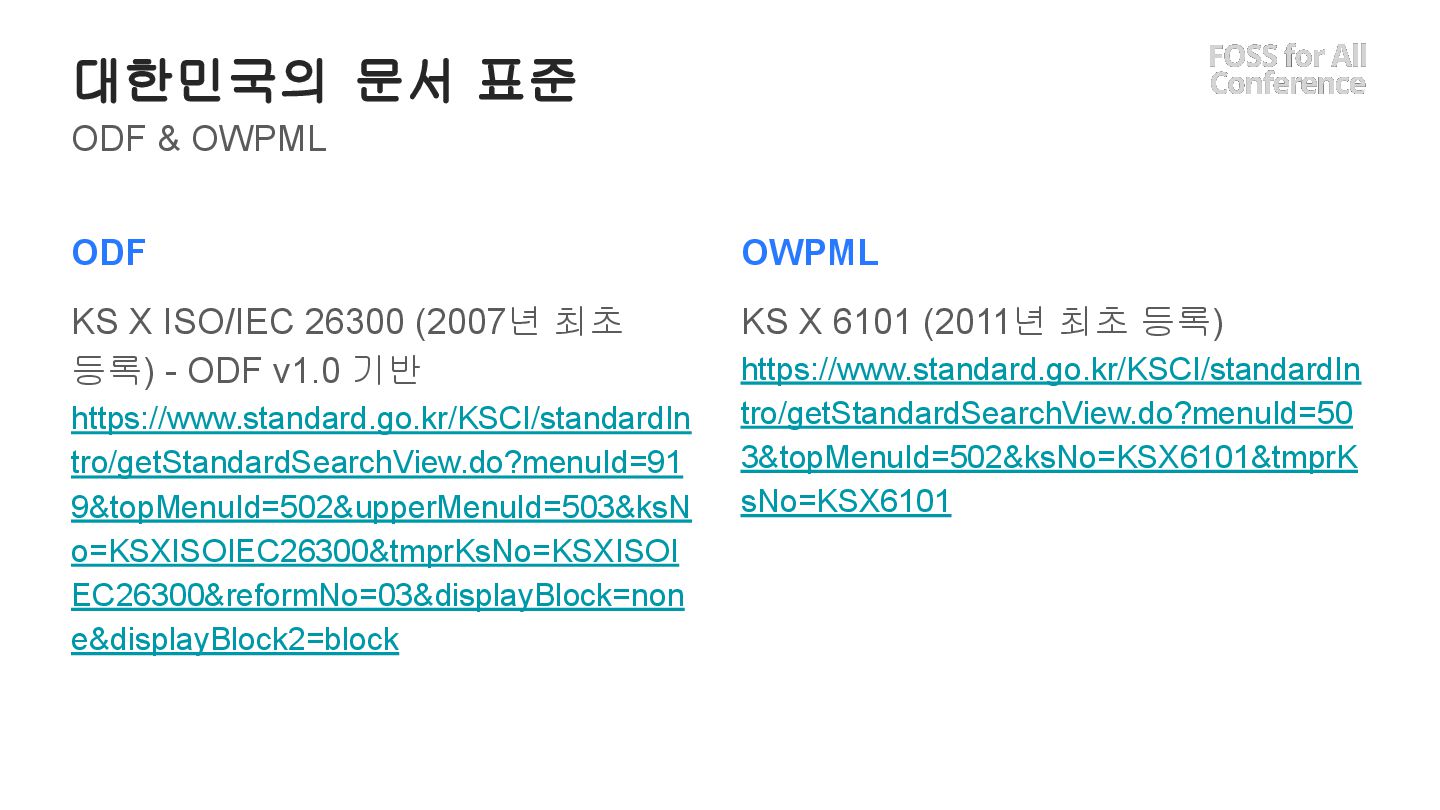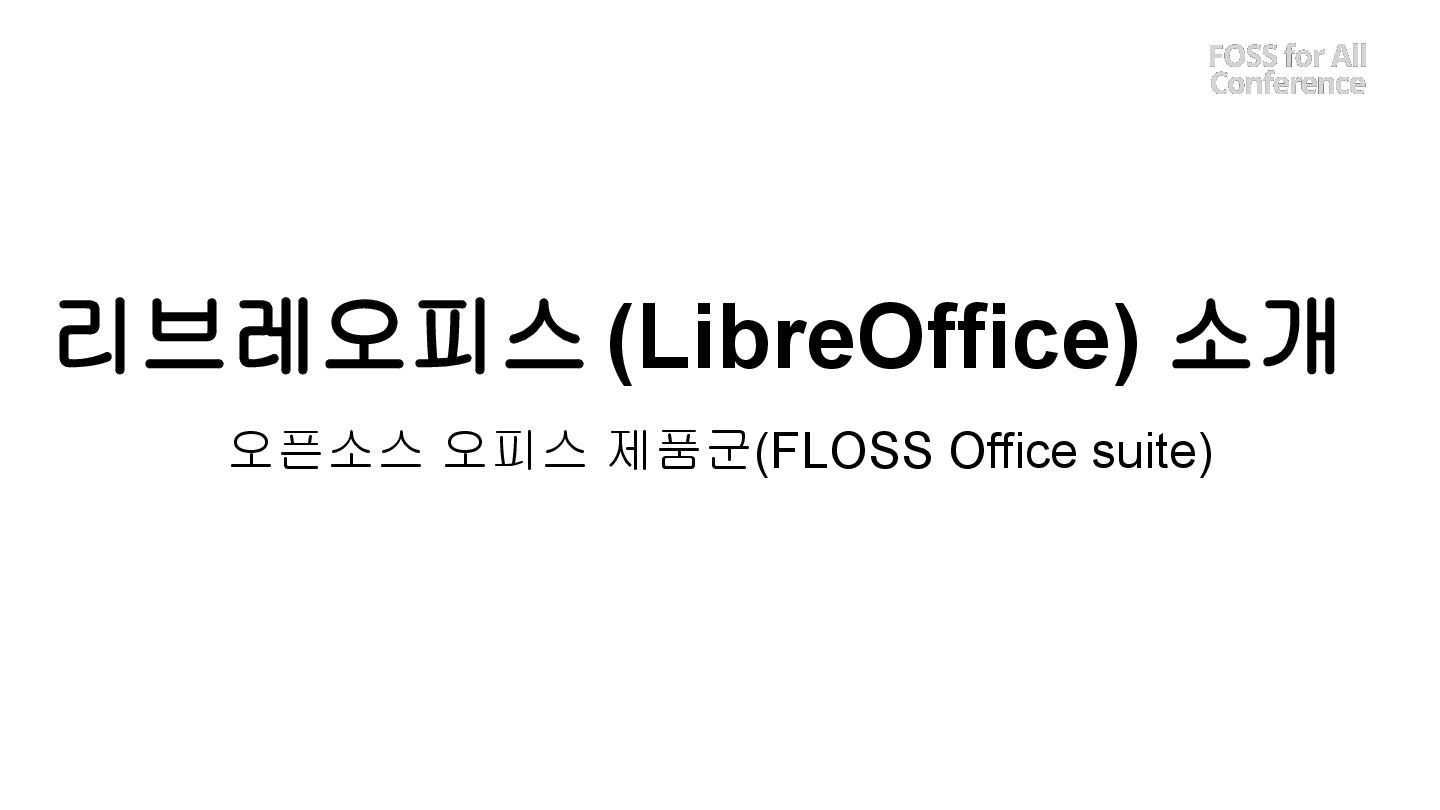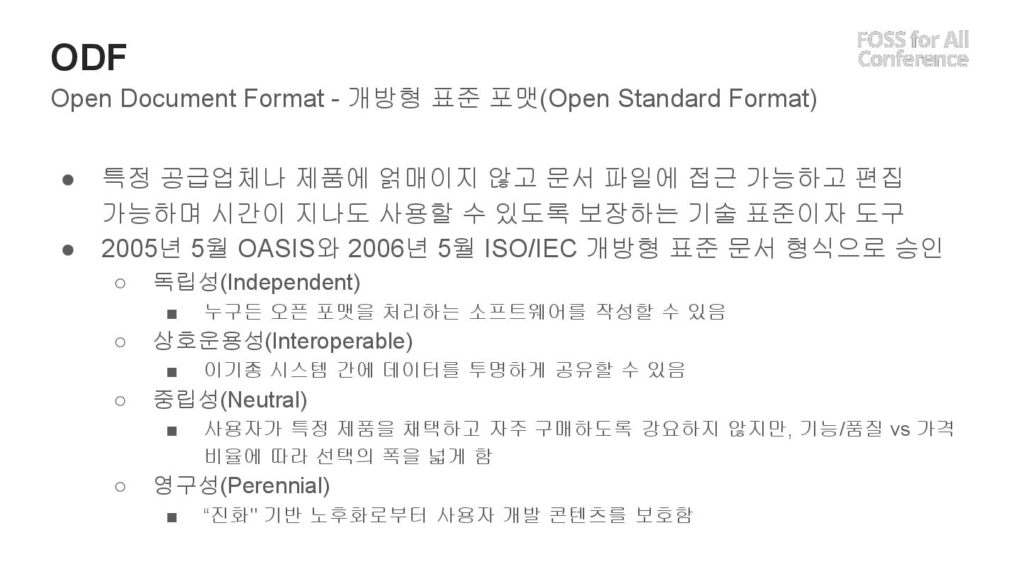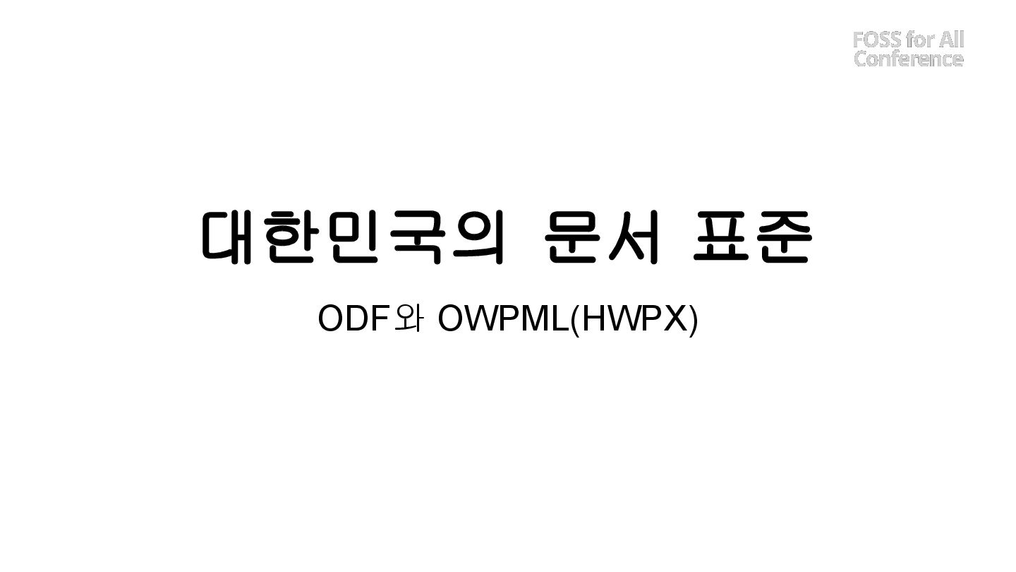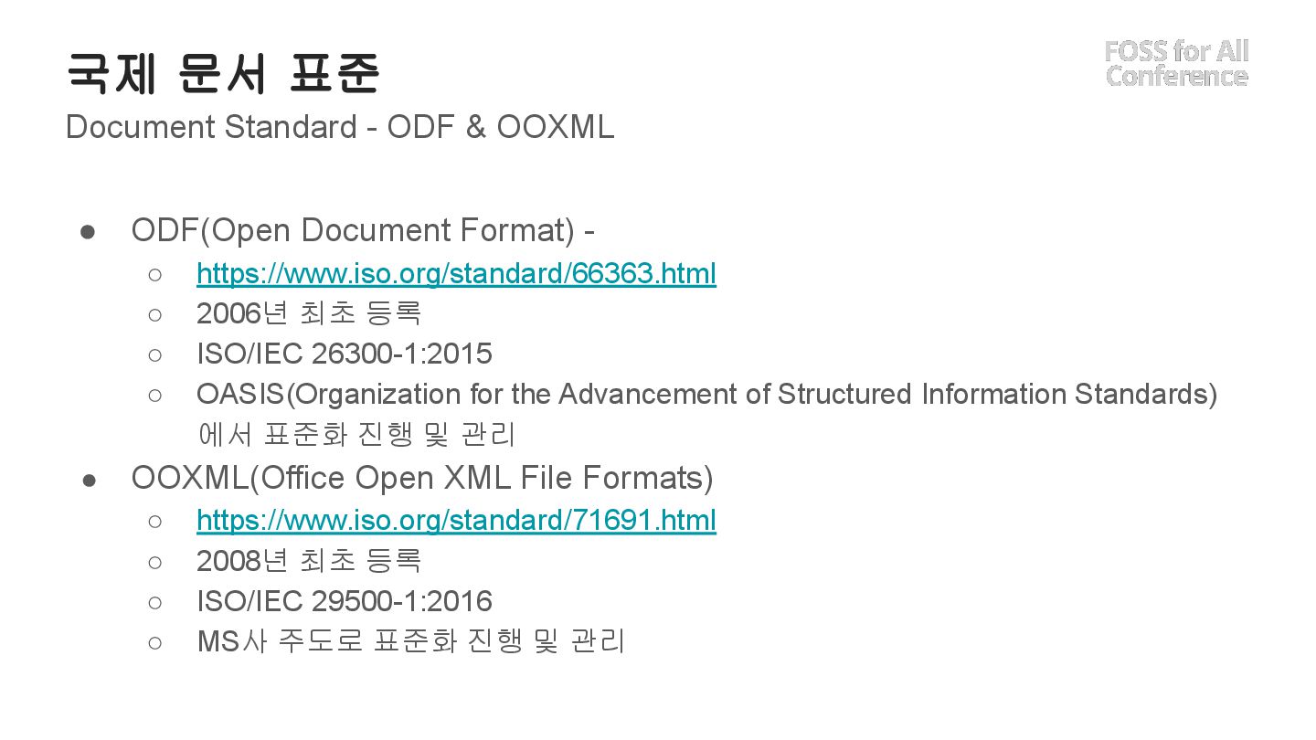 [FOSS for All] 리브레오피스 소개 및 문서 표준과 ODF(Introduction to LibreOffice & ODF, Document standards in Korea)