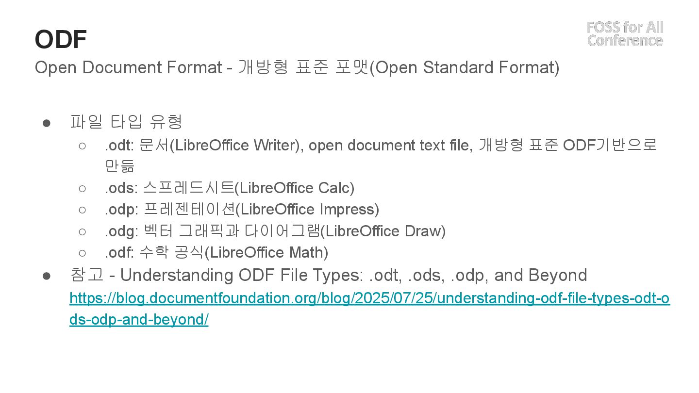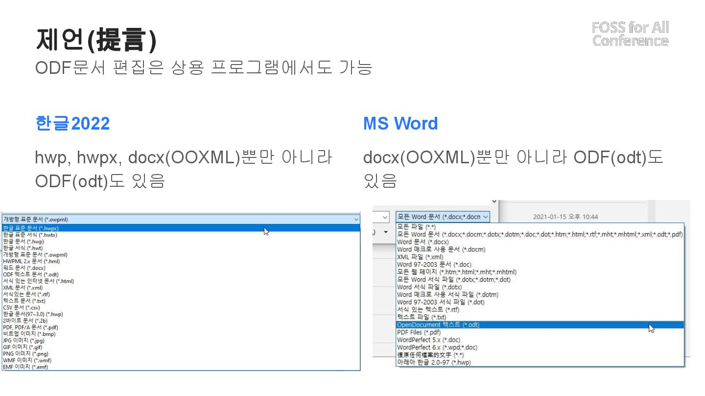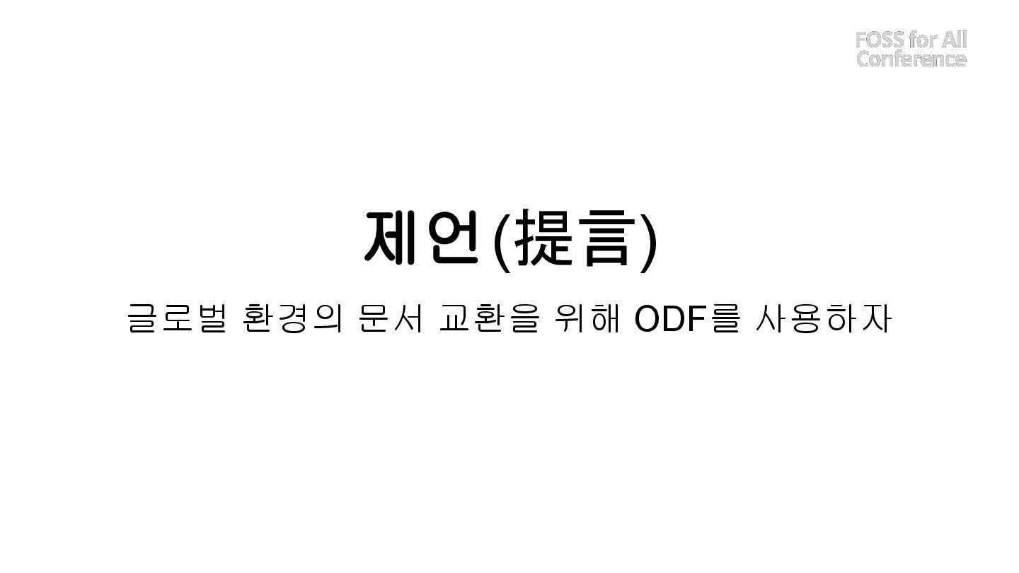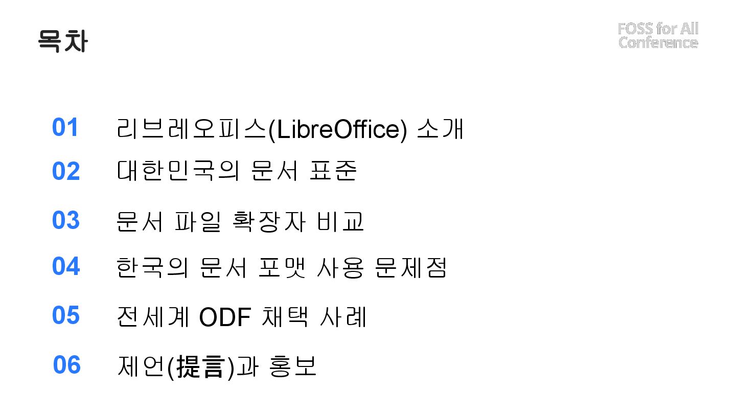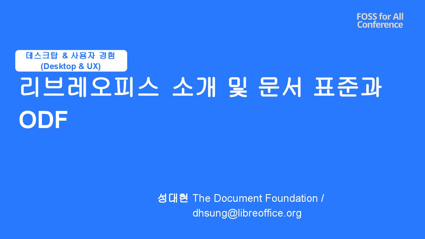 [FOSS for All] 리브레오피스 소개 및 문서 표준과 ODF(Introduction to LibreOffice & ODF, Document standards in Korea)