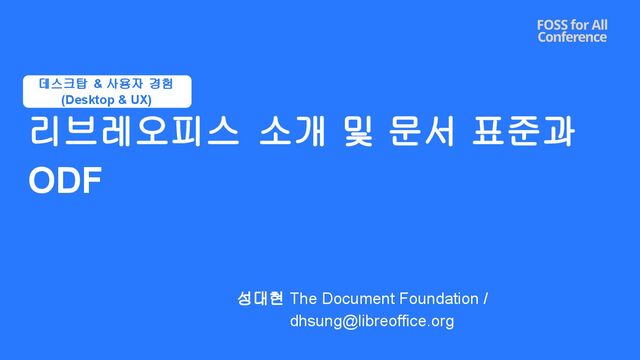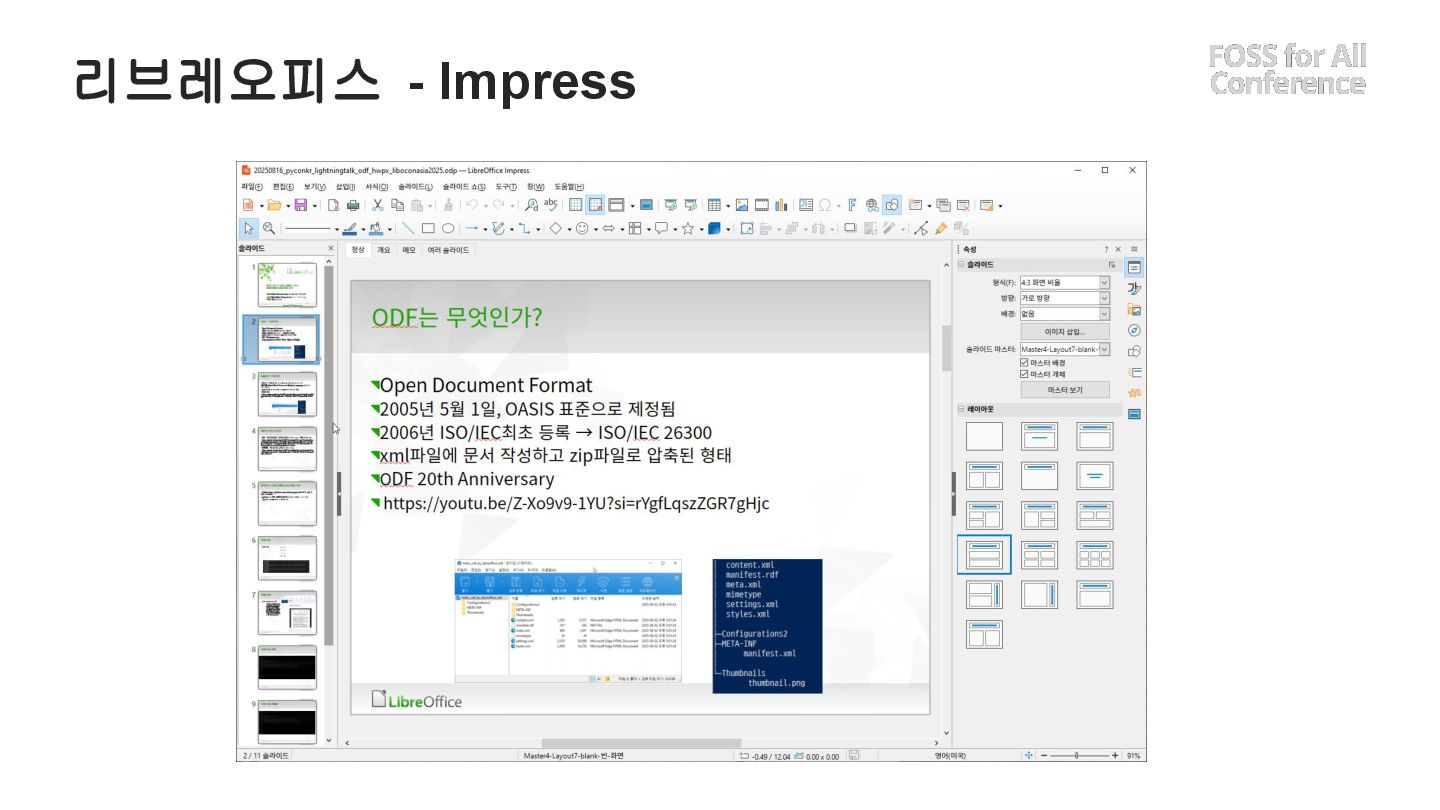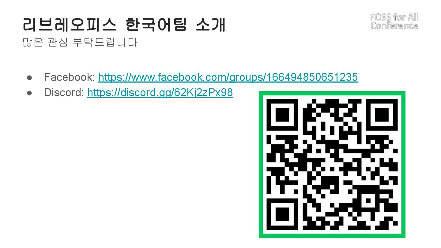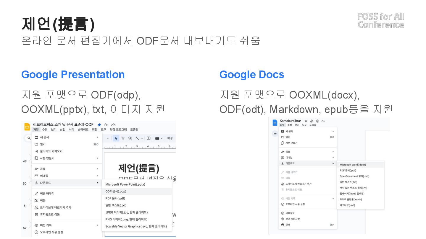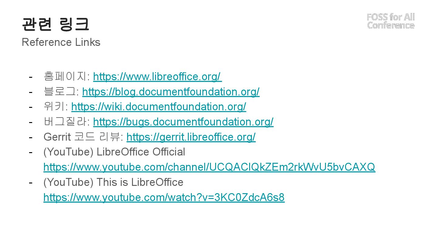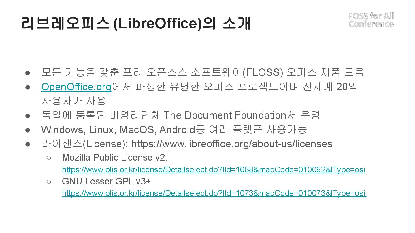 [FOSS for All] 리브레오피스 소개 및 문서 표준과 ODF(Introduction to LibreOffice & ODF, Document standards in Korea)