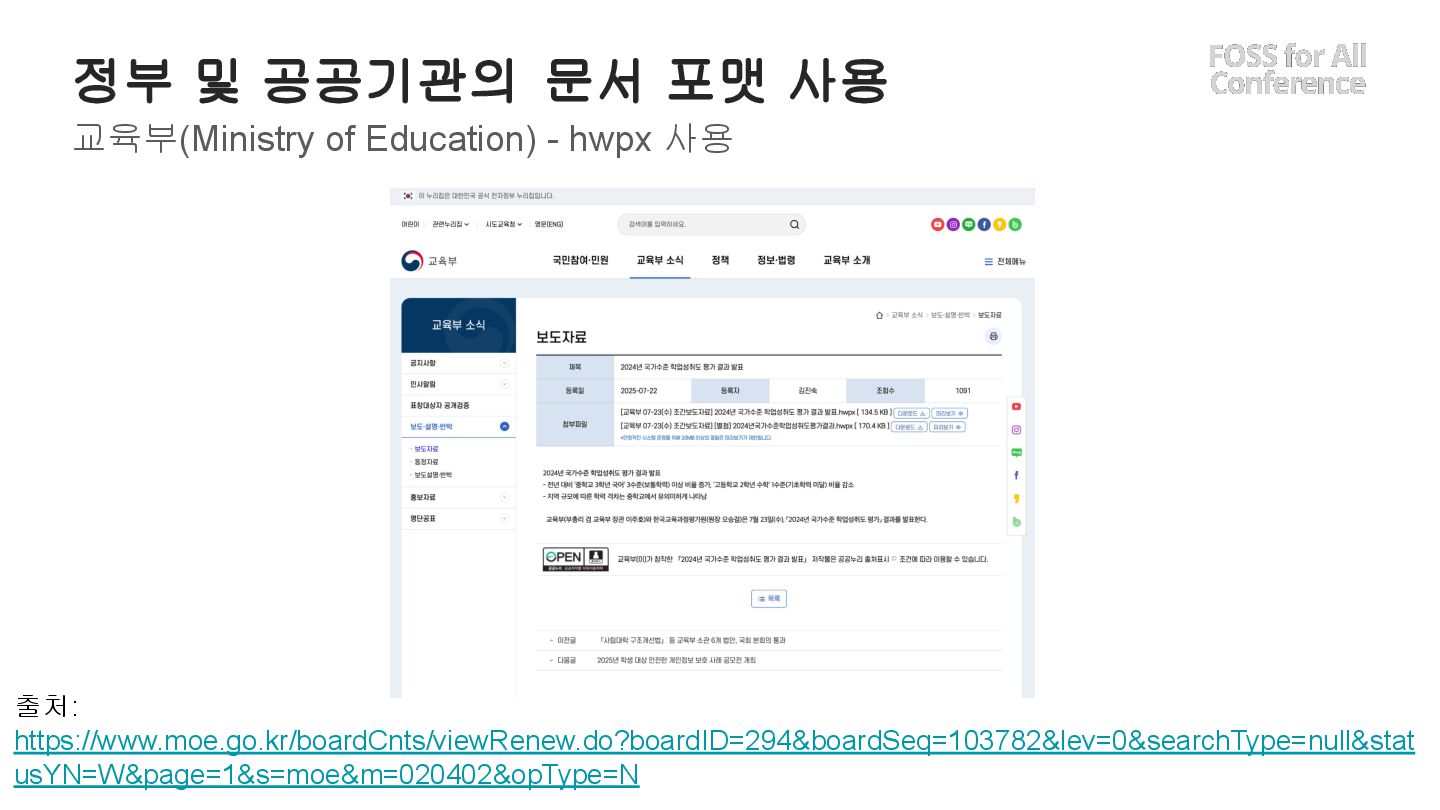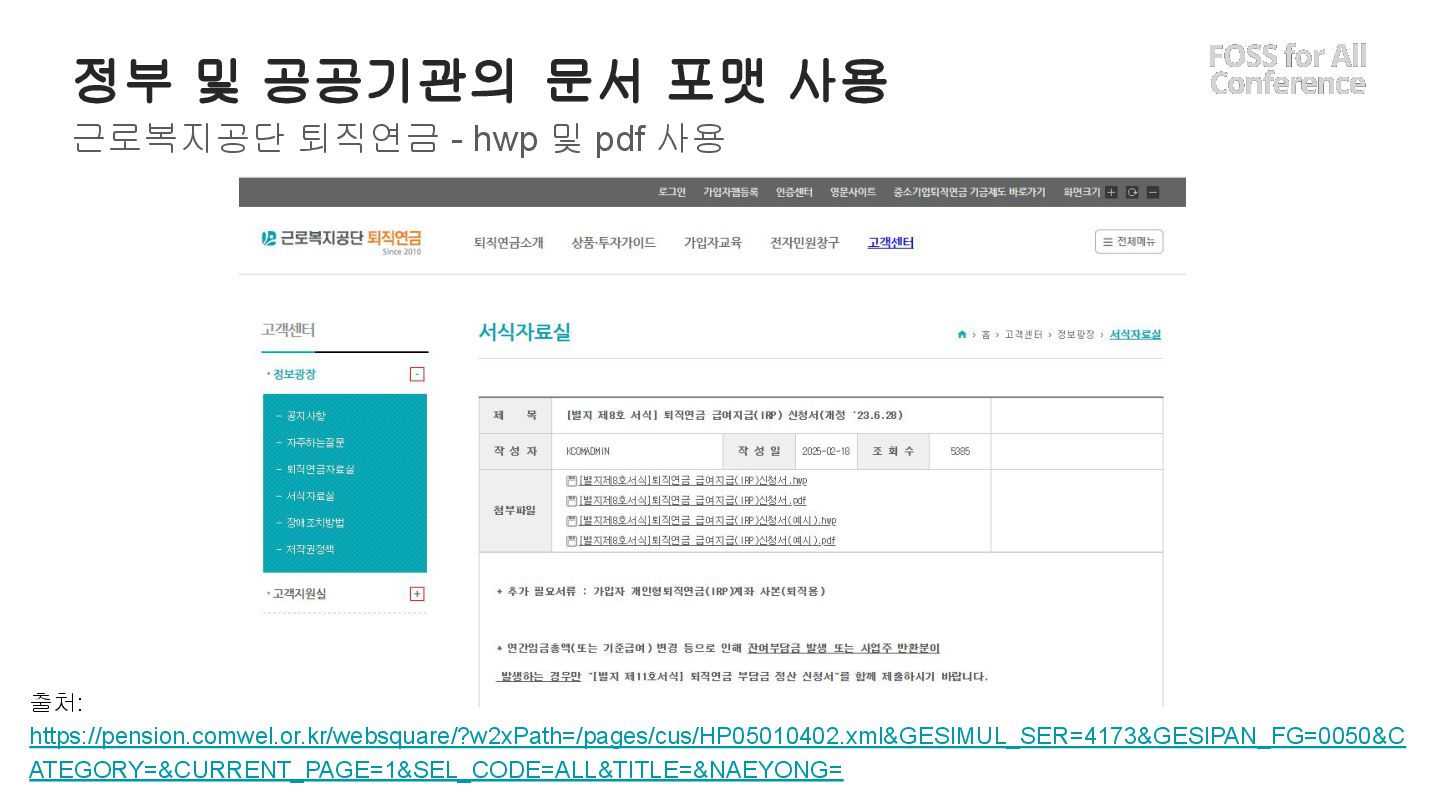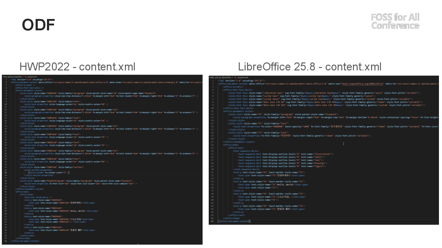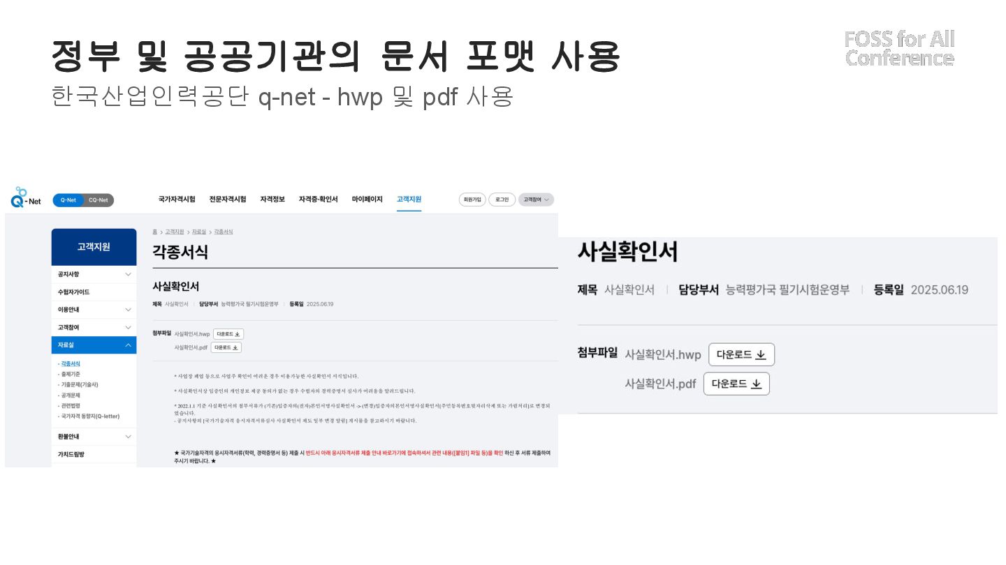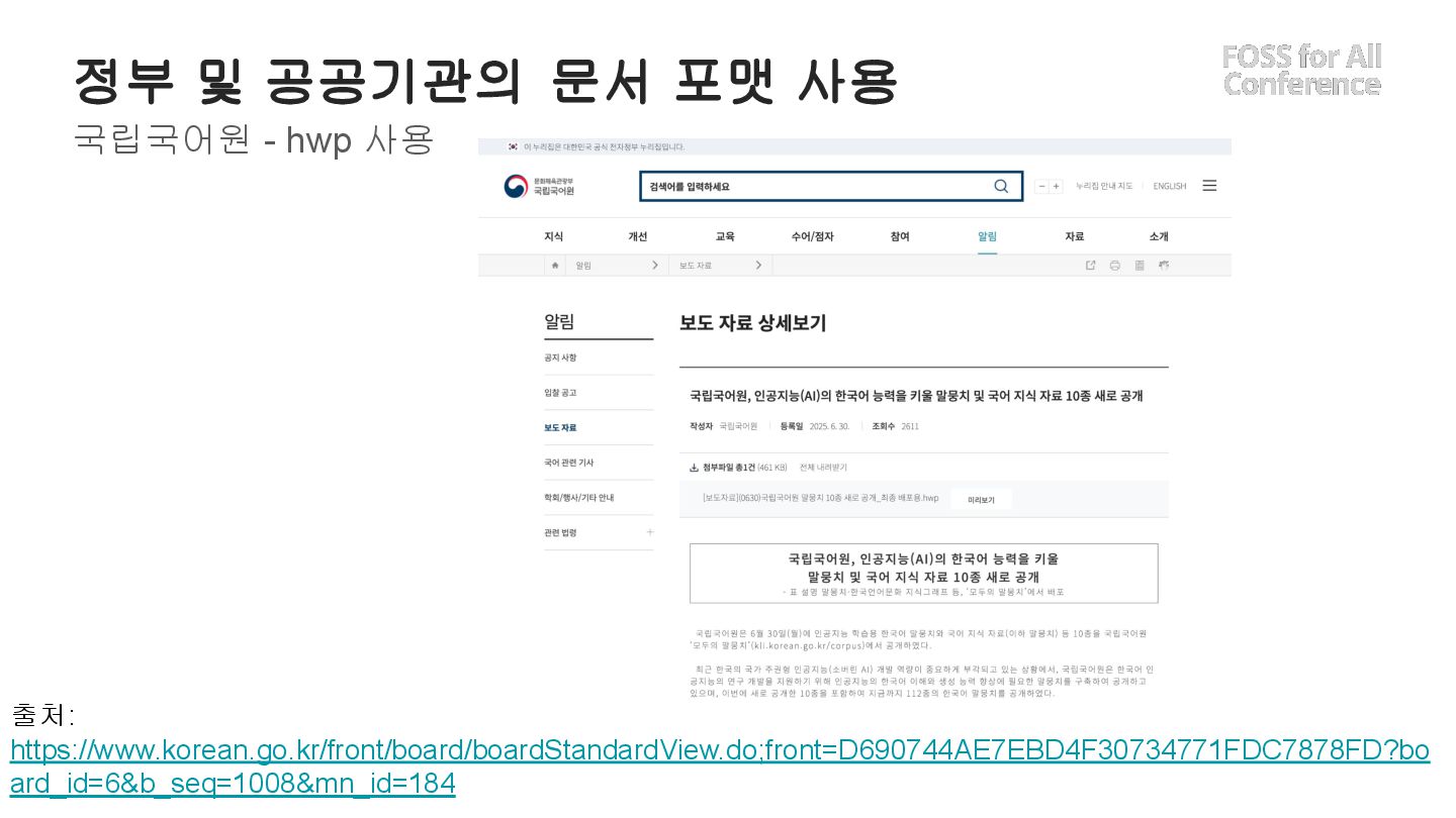 대한민국의 문서 표준 현황을 다루며, 왜 ODF가 중요한지, 폐쇄적 포맷(OOXML, HWP등)과의 차이점, 그리고 공공기관에서의 도입 필요성에 대해서도 소개하겠습니다