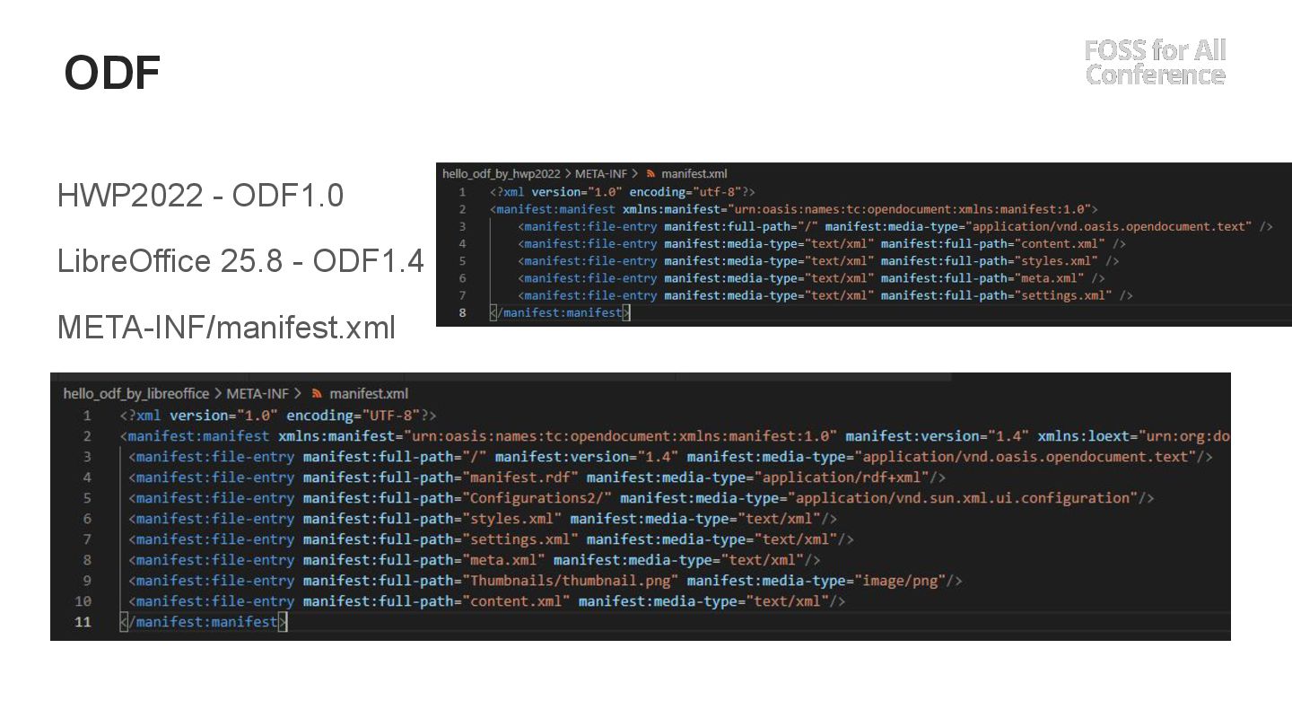 ODF는 ISO/IEC 26300 국제 표준이며, 리브레오피스의 기본 문서 포맷입니다.