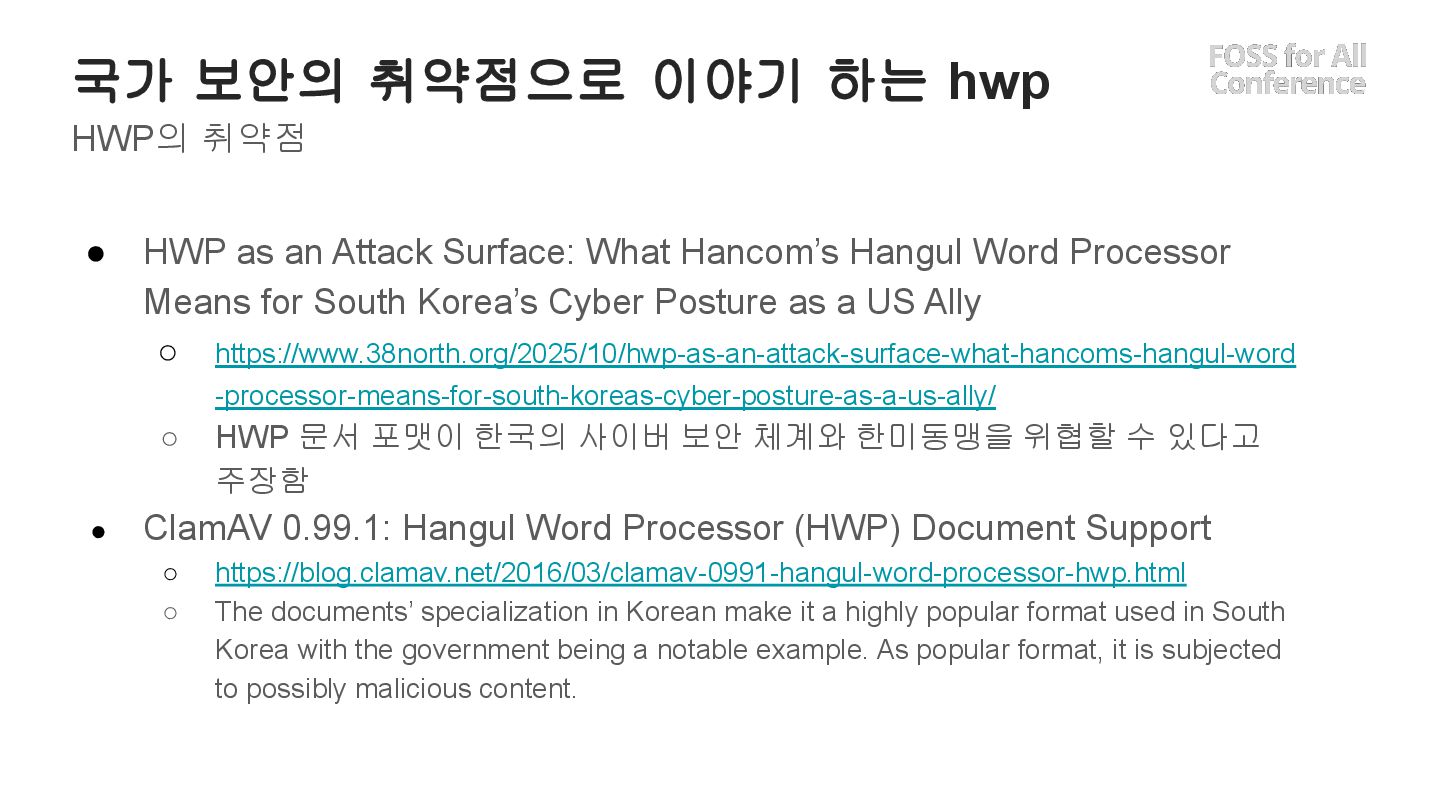 ODF와 함께 HWPX(OWPML)가 국가 표준으로 제정되었음에도 불구하고, 여전히 많은 공공기관에서 구형 바이너리 HWP 파일을 사용하여 발생하는 문제점을 공유하겠습니다.
