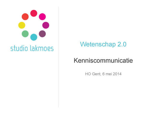 Hoe communiceer je over wetenschap en onderzoek? Wat betekent Wetenschap 2.0 en Open Science voor de manier waarop onderzoekers communiceren? Studio Lakmoes gaf deze lezing aan de onderzoekers en het ondersteunend personeel van de Hogeschool Gent, gevolgd door een miniworkshop blogging.