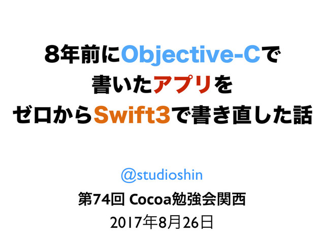 લʹ0CKFDUJWF$Ͱ ॻ͍ͨΞϓϦΛ θϩ͔Β4XJGUͰॻ͖ͨ͠ ୈ74ճ Cocoaษڧձؔ 20178݄26 @studioshin