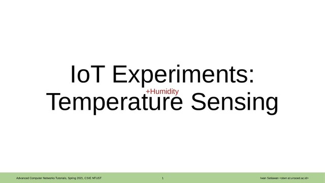 Setiawan <stwn at unsoed.ac.id> CPU Temperature: Live-graphing • Type the code, save, and run • After the live graph is shown, execute a program, e.g. Chromium • Observe the graph from gpiozero import CPUTemperature from time import time import matplotlib.pyplot as plt cpu = CPUTemperature() plt.ion() # enable interactive mode x = [] # create dict x y = [] # create dict y while True: temp = cpu.temperature # get temp y.append(temp) # append temp to dict y x.append(time()) # append time to dict x plt.clf() # clear figure plt.scatter(x,y) # scatter plot for x and y plt.plot(x,y) # plot plt.pause(0.05) # pause plt.draw() # update figure cpu_temp-plot.py