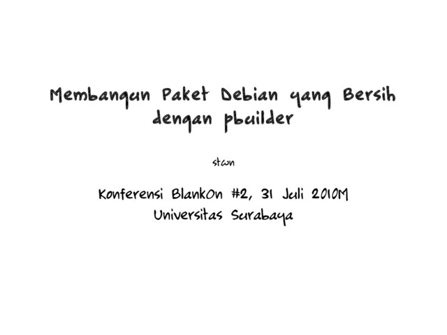 interaksi pengembang, tidak ada paket dependensi yang membutuhkan jawaban yes/no/..., tidak ada pustaka dan alat pengembangan yang aneh , ... “ ” Yang dibutuhkan adalah pola bagaimana paket-paket dibangun dan skrip/program pengotomatisasi masukan-keluaran paket ke/dari pbuilder