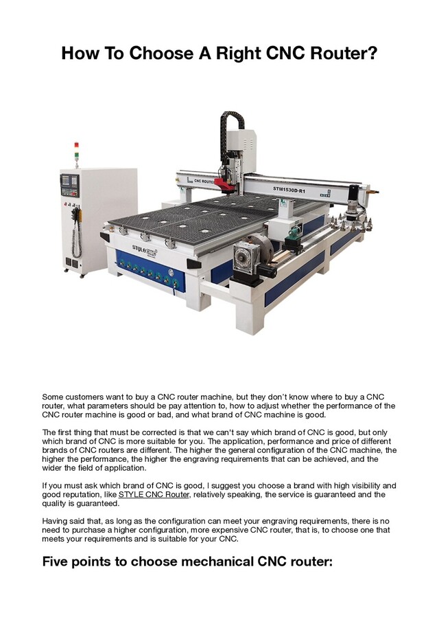 square guide rails, whose load capacity and precision retention capacity are more than 30 times that of round guide rails, ensuring high- quality and high-speed CNC routers. Fifth, precision. Small format machine engraving 1mm Chinese characters, or large format CNC router engraving 1.5mm small characters, should be very clear under the magnifying glass. Purchase guide for mechanical CNC router. 1. Clarify the nature of work. Don't think that buying one CNC router can do all the work. The manufacturers divide the CNC routers into various specifications and models in order to deal with various processing tasks. For example, if you buy a mold CNC router to engrave the two-color plate, or buy a large CNC router to engrave the seal, this will cause a huge waste and will not achieve good results. Similarly, if you buy an advertising-grade CNC router to make molds, you may not be competent at all. So before you buy the machine, you must fully explain to the sales staff what you need to do, including the size of the workpiece, the material material, the thickness and weight of the material, the final engraving effect and requirements, and so on. 2. Choose the right model. For the first time, the small advertising signboard shop purchases the machine, mainly for the production of three-dimensional character lights, crystal characters, double-color plates, badges, etc., it should be purchased at the advertising level, but it should be further refined in the configuration of the machine, such as mainly making double-color plates , It must be equipped with a floating cutter head, because it can ensure that the lettering is consistent when engraving on the large-format two-color board, but it is mainly used to saw plexiglass crystal words, it is necessary to choose a high-power spindle above 800W. Otherwise, long-term heavy work with a low-power and high-precision spindle will accelerate bearing wear and lose accuracy. Generally speaking, the CNC router format is larger than 600mm, and it is not suitable for engraving two- color plates and other delicate work, and it is suitable for sawing and making some large flat cards. The CNC router with a width of about 600mm is a general-purpose CNC router, which can be used for fine work such as double-color plates and rough work for sawing. For the processing of cylindrical surfaces or other special-shaped workpieces, due to the need to install some jigs or rotating coordinate axes, this will show the height of the Z-axis column, and the space between the table and the cutter head is large, so a special machine can be used. If the seal shop specializes in engraving seals, it can be equipped with a seal CNC router first. The laser CNC router for engraving leather stamps and atomic seals is the best, while the stamps for materials such as bronze stamps, jade stamps, and horns are 6090. If the two are combined, all kinds of materials are common. 3. Trial carving before purchase. Before purchasing a CNC router, in order to ensure the return of your investment, you should let the sales staff or you do it yourself, and try to carve the most common work you do. Simultaneously calculate the ergonomics, observe the effect, fully test the performance of the machine, and really know what you want. 4. Sign a contract. After deciding to purchase, the first thing to do is to sign a contract with the seller. The contract should indicate the purchased model, configuration, price, delivery time and delivery method,