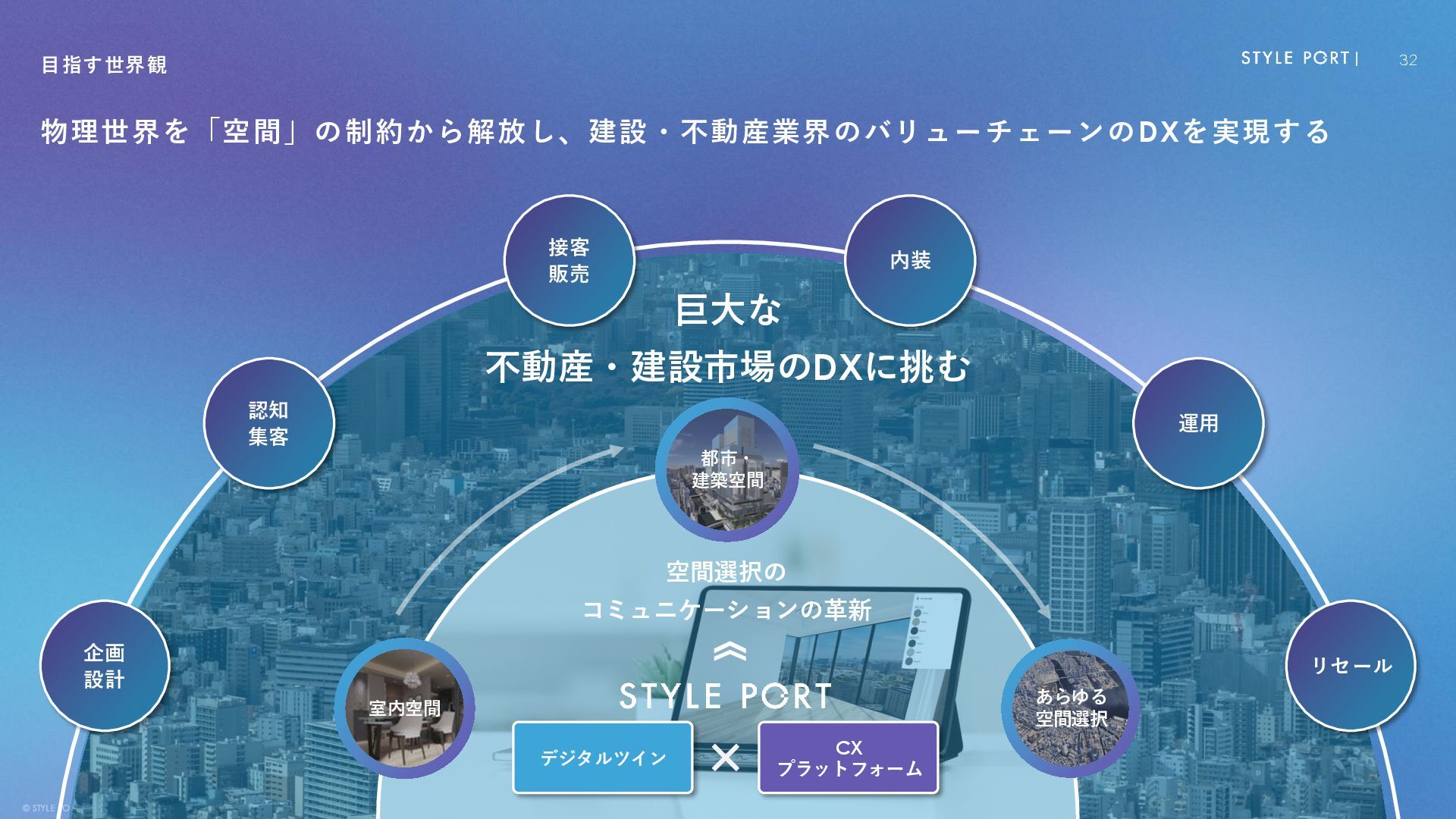 東京都渋谷区神宮前4ー3ー15 東京セントラル表参道 代表者 間所 暁彦 従業員数 77名 事業内容 不動産マーケットにおけるITソリューションの開発および提供 役員構成 4 中條 宰 1988年、株式会社リクルートに入社。2003年、ソネット・エムスリー株式会社(現 エムスリー株式会社)に加わり、m3.comサイトプロデューサー、新規事業開発を担 当。同社取締役、及びエムスリーキャリア株式会社代表取締役を歴任し独立。間所 と共に株式会社スタイルポートを設立。2017年12月、取締役就任。 取締役 間所 暁彦 矢作 建設工 業にて 建築営 業業務 を中心 に13年間 勤務し た後に 投資法 人の上 場業 務に従 事。2006 年よ り矢作 地所株 式会社 にて開 発担当 取締役 として 、 投資 用不動産の企 画・開 発・運 用、分 譲マン ション の企画 ・開発 を中心 と した 不動産 開発に 手腕を 発揮。 2017 年10月、 株式会 社スタ イルポ ートを 設立 し、代 表取締 役に就 任。 代表取締役 堀井 秀雄 1995年、野村不動産コマース株式会社(旧株式会社ジオ・アカマツ)に入社。開発 コンサルタント部門にて、市街地再開発事業やショッピングセンター開発に係る企 画、テナントリーシング、事業推進業務を手がける。2017年12月、株式会社スタイ ルポート入社。2020年5月、取締役就任。 取締役 中村 幸弘 1996年、株式会社野口建築事務所に入社、約10年間、分譲マンションの設計監理業 務に従事。2008年株式会社三菱地所設計に入社。大規模分譲マンションの開発プロ ジェクトや教育施設のマスタープラン策定を手がける。2017年12月、株式会社スタ イルポート入社。2021年10月、取締役就任。 取締役