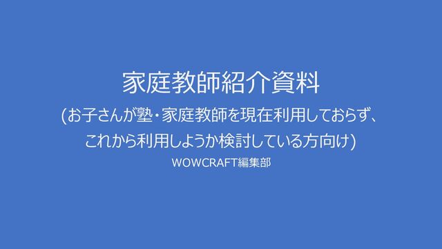 高校受験 見 14,15歳 一方 小学1年生 月当 10,000円以上 支出 ※3-18歳 子 持 母親16,170名 対 調査 課題 対 :50%以上 人 10歳 通 ! 月 支出額 比 今 子 支出額 低 場合 家 教 通 ! 31.7% 8歳 38.4% 40.8% 3歳 7歳 52.1% 4歳 56.8% 6歳 5歳 9歳 10歳 11歳 12歳 13歳 14歳 15歳 16歳 17歳 18歳 10.9% 15.0% 24.1% 42.4% 49.6% 54.9% 52.6% 54.4% 62.1% 34.6% 35.9% 小学校入学 中学校入学 高校入学 source: 学校外教育活動 関 調査2017 教育総合研究所(2017) 社作成 ※3-18歳 子 持 母親16,170名 対 調査 子 定期的 通 教室 答 人 割合 4歳 11歳 右 上 割合 増加 小学校 入学 学校 授業 通 人 多 高校受験 通 人 多 想定 ※ 教室 受験 強 英会話 英語教室 週次 補習 教材教室 学校 補修教室 算数 数学教室 能力開発 児教室 国語 作文教室 定義 0 5,000 10,000 15,000 20,000 25,000 30,000 9歳 6歳 8歳 3歳 4歳 5歳 7歳 10歳11歳12歳13歳14歳 16歳 15歳 17歳18歳 ※学校外教育活動 教室 学習活動 他 術活動 活動 活動 含 小学校入学 中学校入学 高校入学 平 : 6,500円 小学生平 : 15,300円 中学生平 : 22,200円 高校生平 : 16,000円