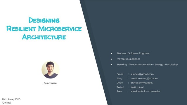 application life cycle. Designing, Coding, Refactoring, Testing, Deploying, and Maintaining. • How do you test your code before deploying to production ? • Deployment strategy ( backup, roll back, isolation, etc. ) • Load testing • Resources consumption • Sync/Async communication Resiliency is not only about infra or some patterns, but also about network, application, people and culture. Conclusion Conclusion