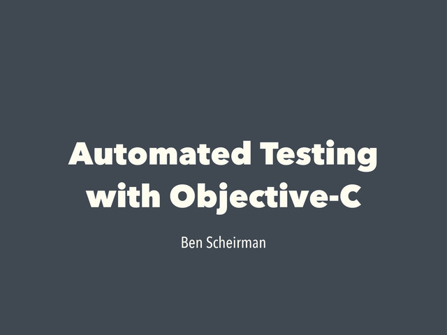 A quick tour of automated testing in Objective-C, starting with why we should care. Covers the basics of testing with XCTest, when to leverage mocks for testing interactions, how to test Storyboard / IB related things like instantiated view controllers or wired up actions. Follows it up with a more complex example of testing a callback block.