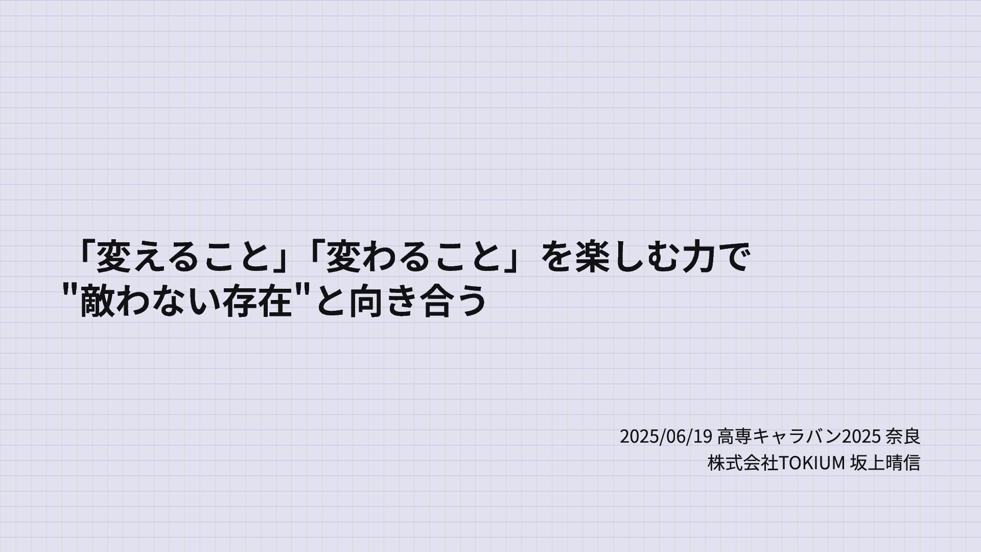 「変えること」 「変わること」を楽しむ力で "敵わない存在"と向き合う 2025/06/19 高専キャラバン2025 奈良 株式会社TOKIUM 坂上晴信