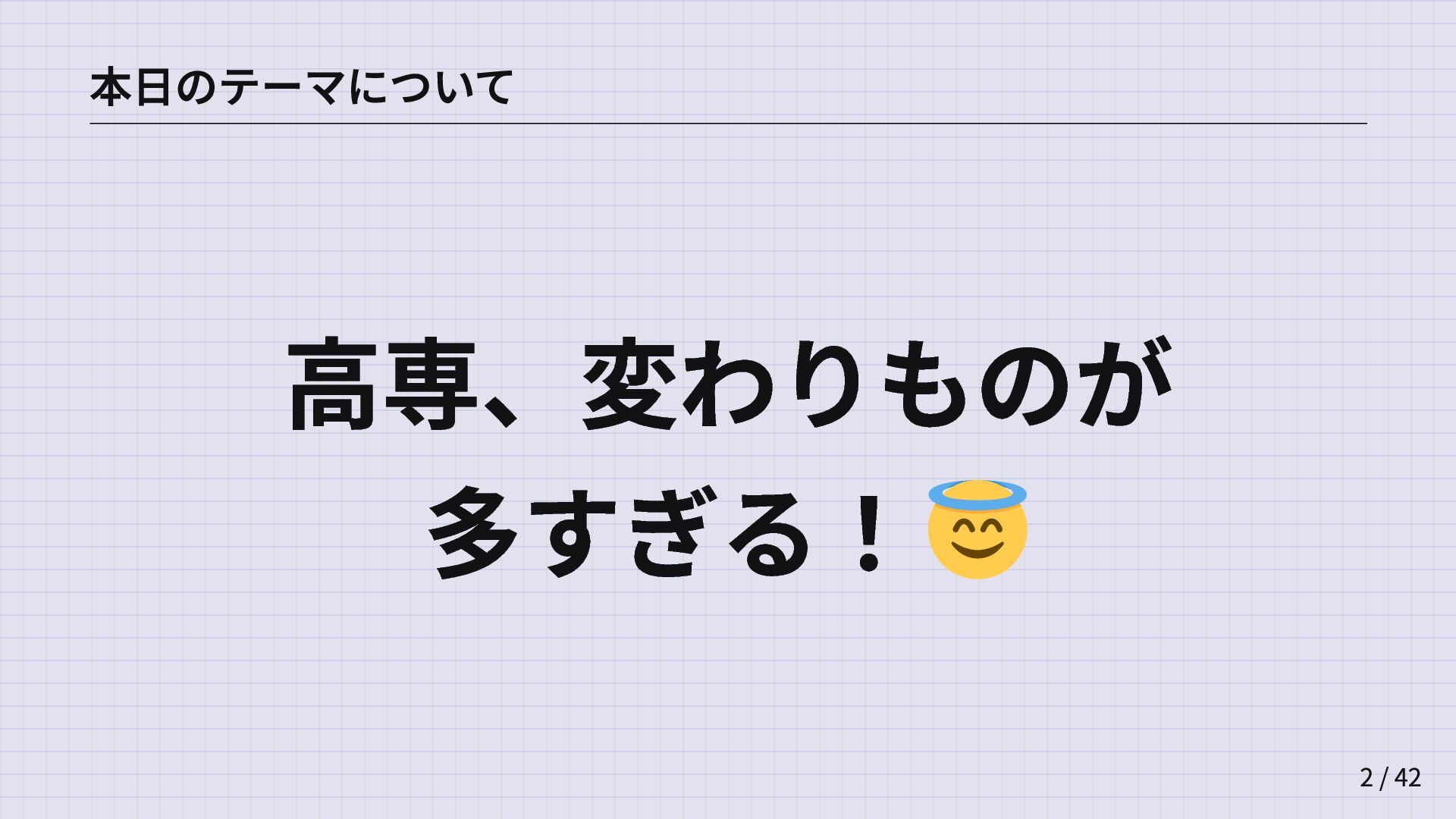本日のテーマについて 高専、変わりものが 多すぎる! 2 / 42