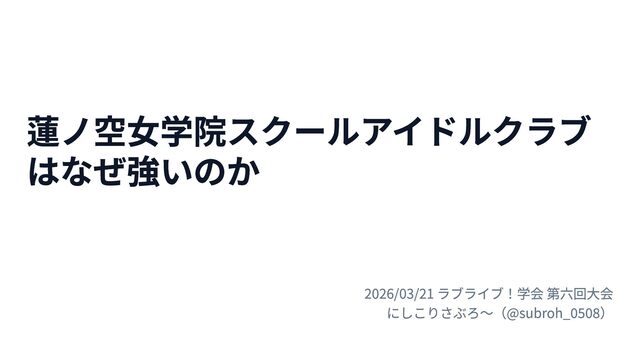 蓮ノ空女学院スクールアイドルクラブ はなぜ強いのか 2026/03/21 ラブライブ!学会 第六回大会 にしこりさぶろ〜(@subroh_0508)