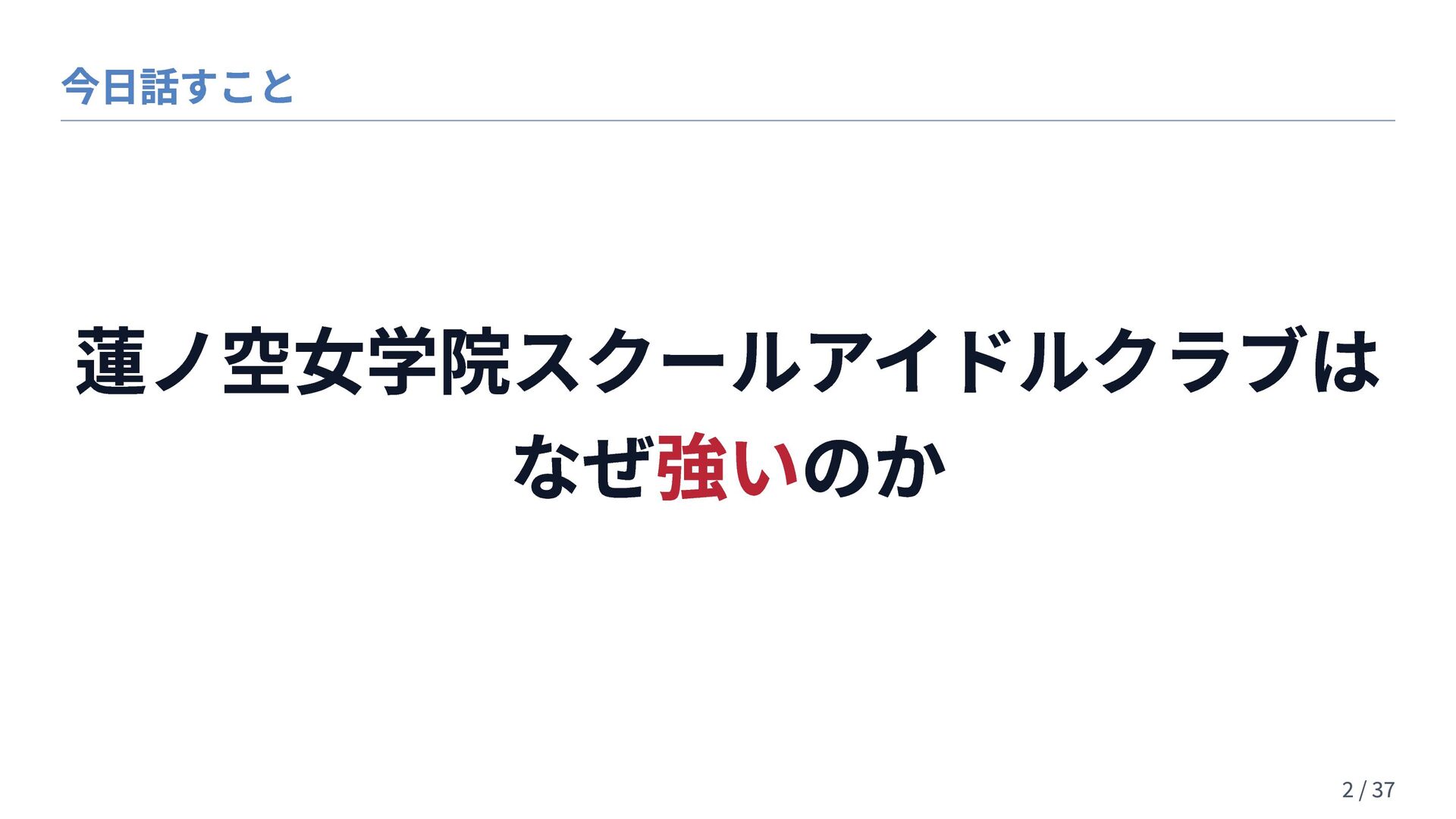 蓮ノ空女学院スクールアイドルクラブは なぜ強いのか 今日話すこと 2 / 37
