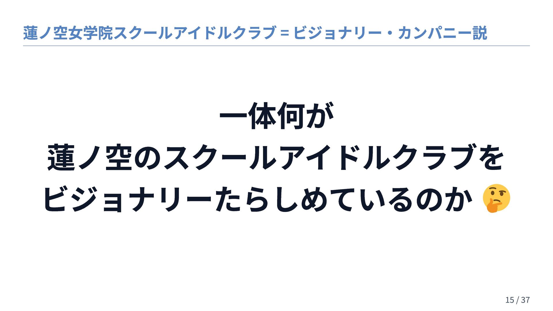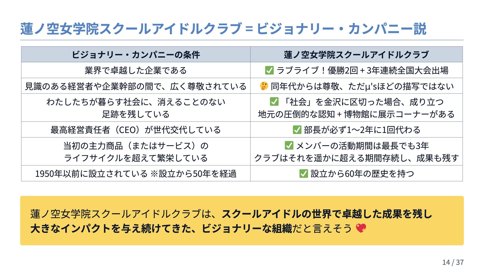 一体何が 蓮ノ空のスクールアイドルクラブを ビジョナリーたらしめているのか 蓮ノ空女学院スクールアイドルクラブ = ビジョナリー・カンパニー説 15 / 37