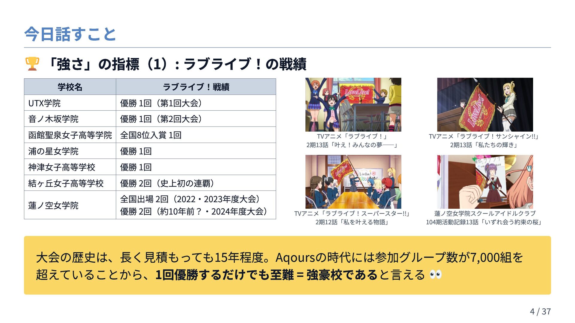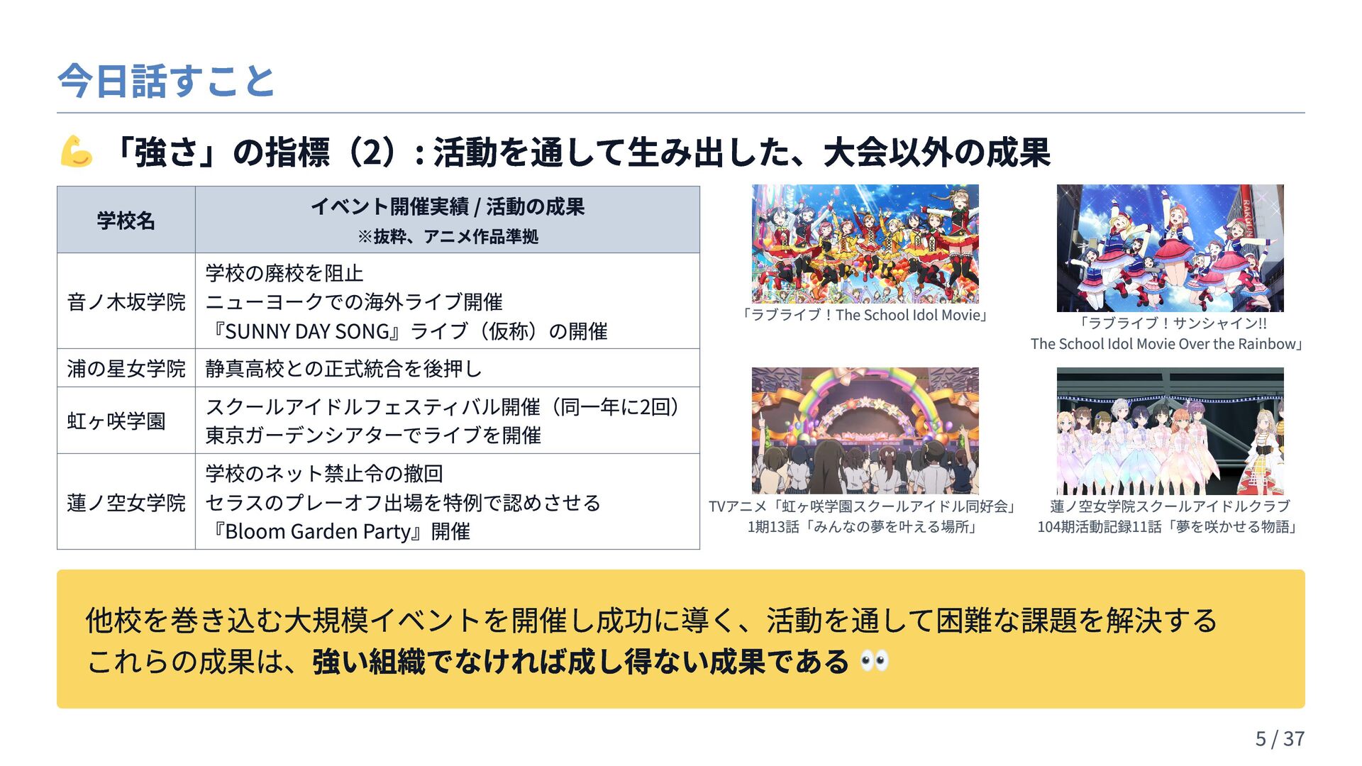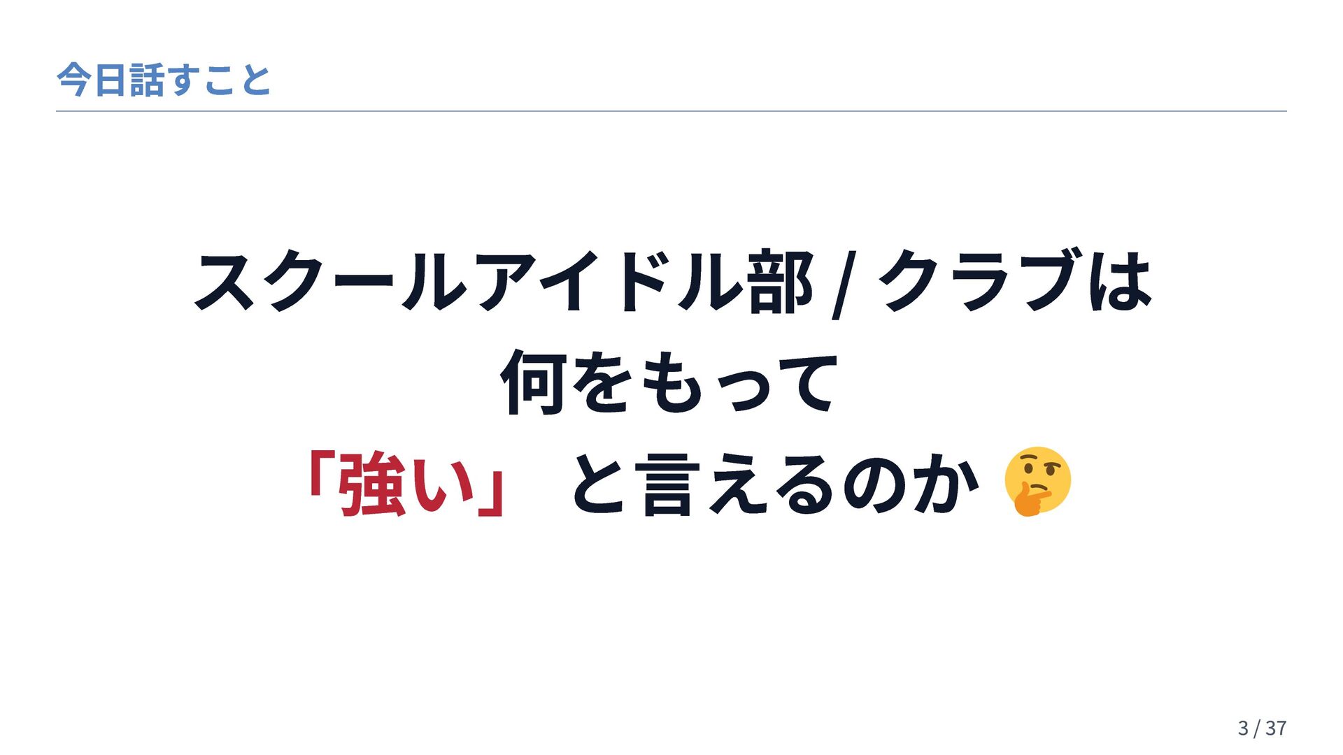 スクールアイドル部 / クラブは 何をもって 「強い」 と言えるのか 今日話すこと 3 / 37