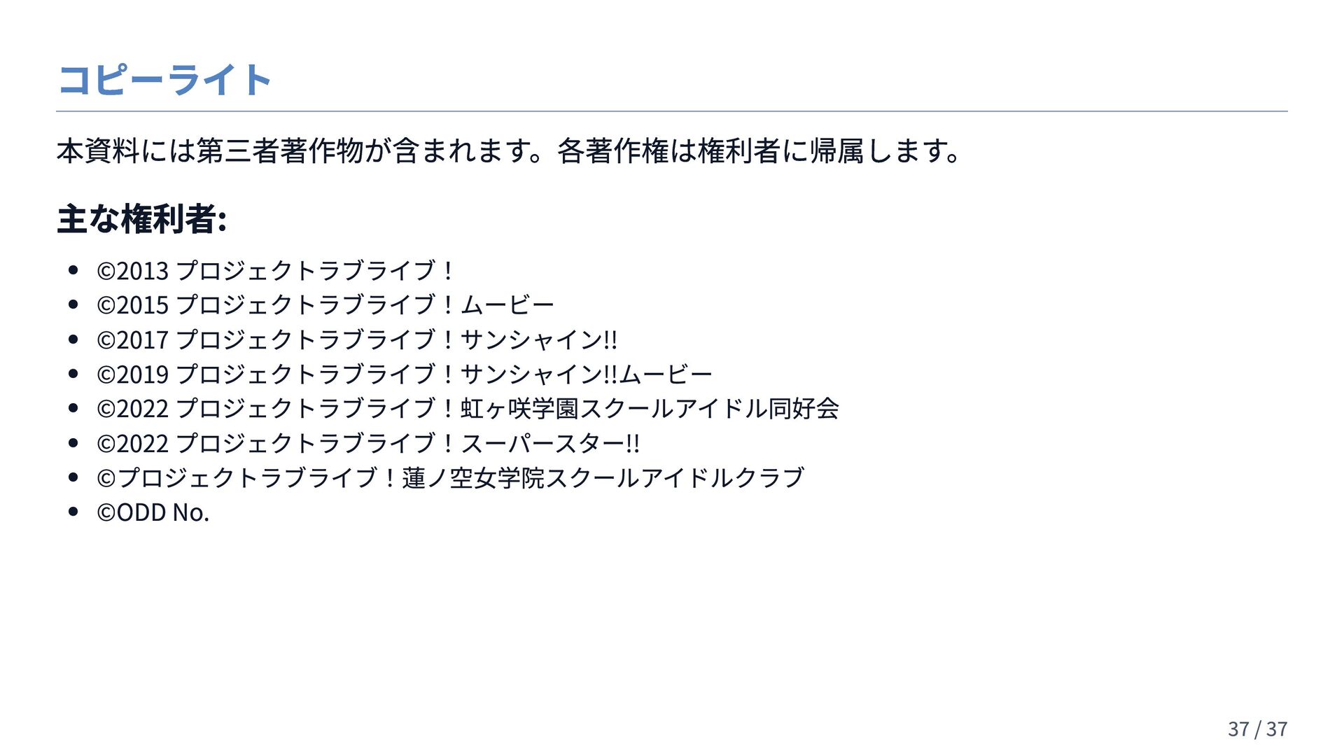 ©2022 プロジェクトラブライブ!虹ヶ咲学園スクールアイドル同好会 ©2022 プロジェクトラブライブ!スーパースター!! ©プロジェクトラブライブ!蓮ノ空女学院スクールアイドルクラブ ©ODD No. コピーライト 37 / 37