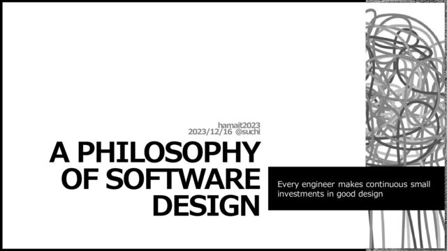 2023/12/16の浜松IT技術者忘年会2023で「A Philosophy of Software Design 2nd Ed」を5分で薦めるLTをしました。