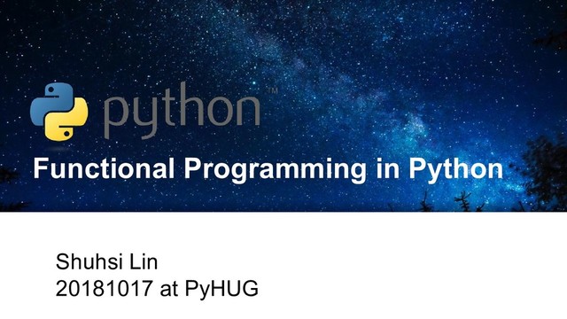 The sharing at PYHUG will start with the concepts of functional programming. Then, you will know at functional language features in Python such as first-class functions, lambda expressions and so on. In addition, relevant library modules such as itertools and functools will be briefly mentioned.
