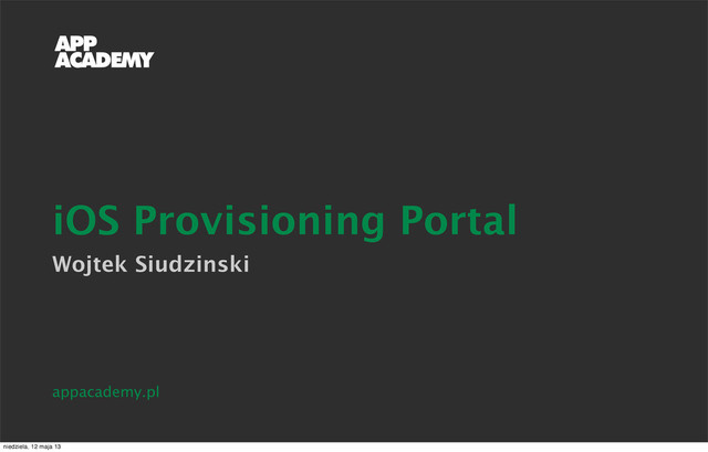 iOS Provisioning Portal Wojtek Siudzinski appacademy.pl niedziela, 12 maja 13