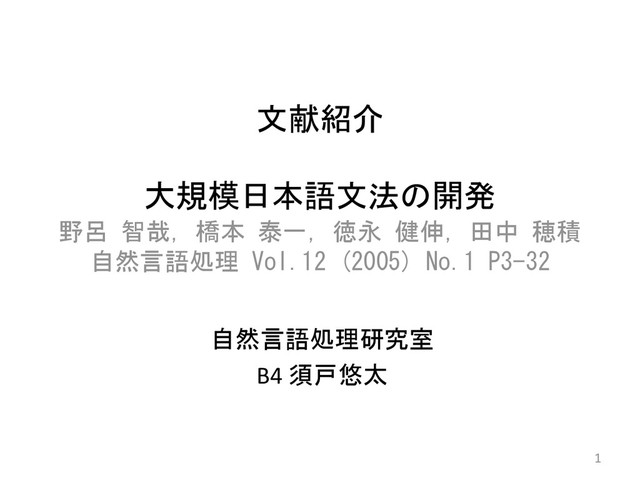 自然言語処理 Vol.12 (2005) No.1 P3-32 自然言語処理研究室 B4 須戸悠太 1