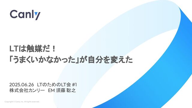 Copyright © Canly, Inc. All rights reserved. LTは触媒だ! 「うまくいかなかった」が自分を変えた 2025.06.26 LTのためのLT会