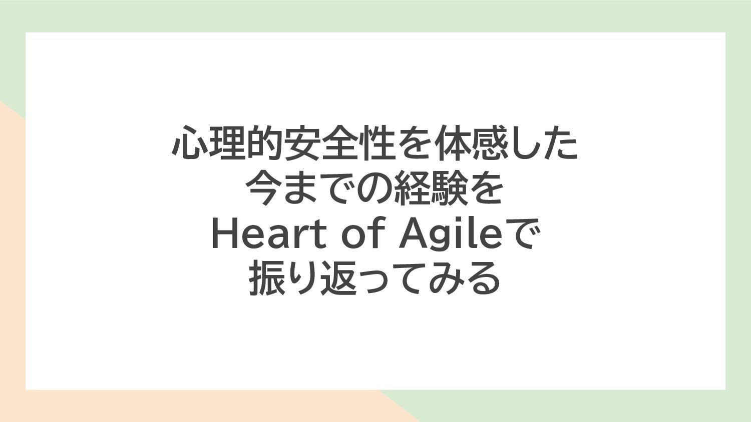 心理的安全性を体感した 今までの経験を Heart of Agileで 振り返ってみる