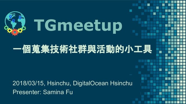 new local technology meetup group located at Hsinchu city, organized by students in NCTU(National Chiao Tung University) and DigitalOcean! We are interested in various open source, Linux, cloud computing, DevOps, web development and network related techs and tools.", "countrycode": "tw", "city": "Hsinchu", "keywords": [ "open source", "cloud", "DevOps" ], "contributors": "DigitalOcean Hsinchu organizers", "registration": { "type": "meetup", "url": "https://www.meetup.com/DigitalOceanHsinchu/" 如何使用與貢獻 22 "chat": [ { "type": "slack", "urls": [ "https://digitaloceanhsinchuslack.herokuapp.com/", "https://digitaloceanhsinchu.slack.com" ] } ], "social-media": [ { "type": "facebook", "urls": [ "https://www.facebook.com/DigitalOceanHsinchu/", "https://www.facebook.com/groups/DigitalOceanHsin chu/" ] } ] }