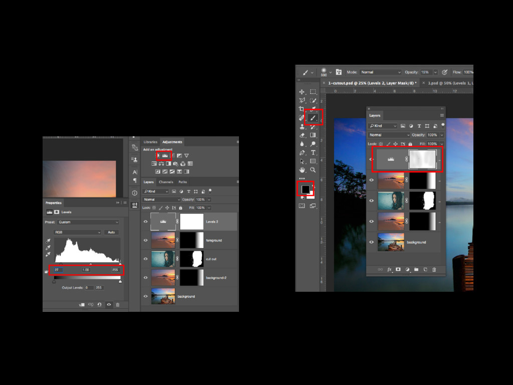 In this Photoshop composition tutorial with your complete PDF guide: learn the techniques to construct this exciting image using: layers, masks, adjustment layers brushes and selections. We begin with how to make a detailed section using “Select and Mask”. How to fine tune your selection using the “Edge Detection Settings” and constrained masking features