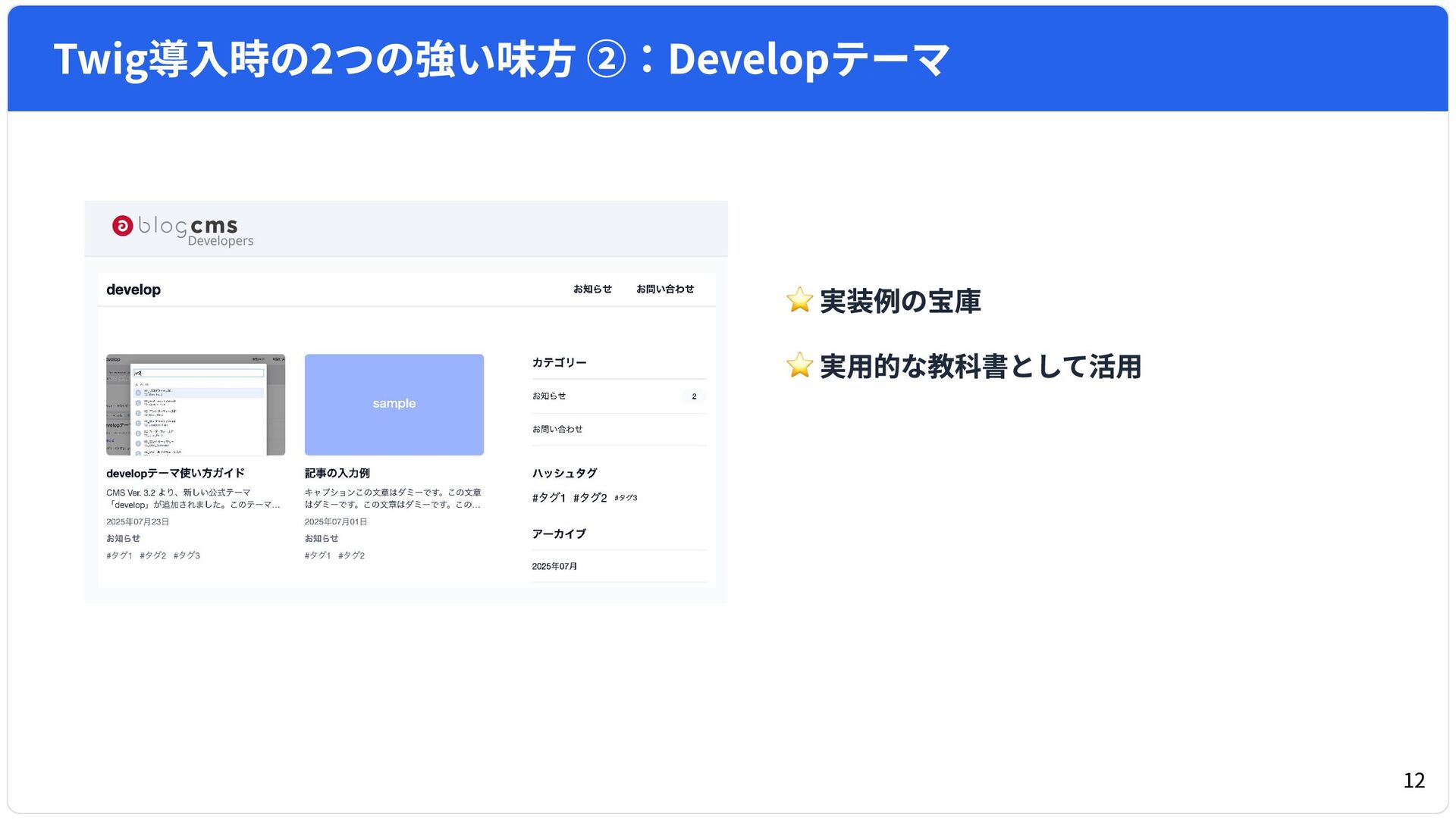 これからTwig導入を検討されている方や、a-blog cms の新しい開発スタイルに興味がある方の参考になれば幸いです。