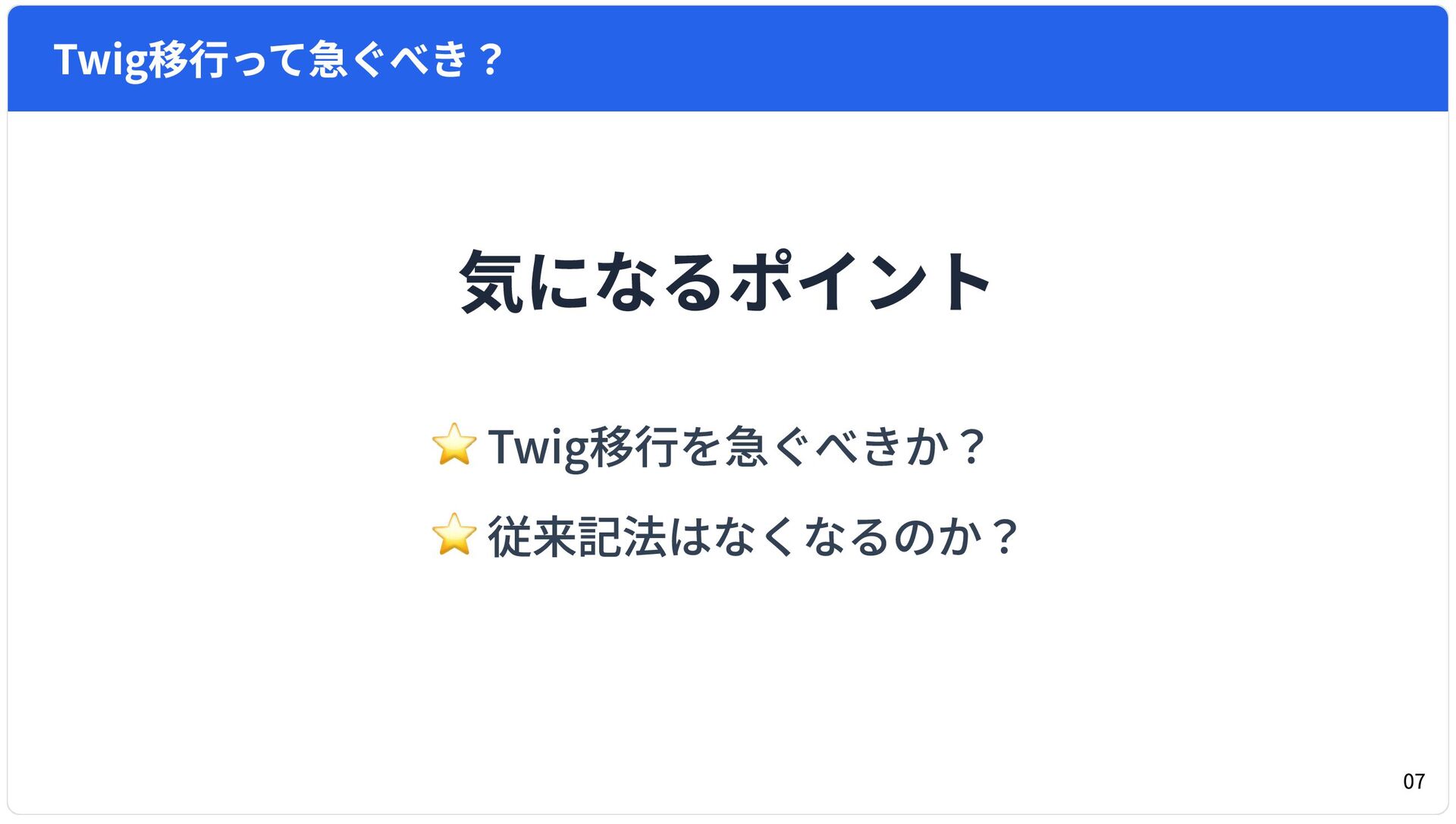 - Twig移行って急ぐべき?(開発チームへのQ&A)