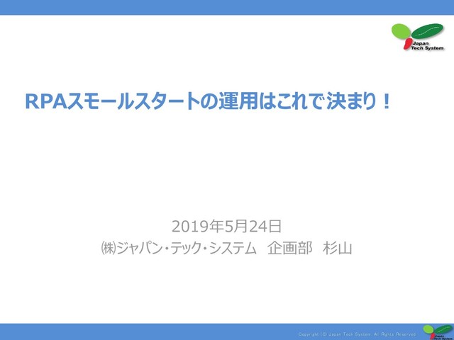 1. Copyright (C) Japan Tech System. All Rights Reserved. 2019年5月24日 ㈱ジャパン・テック・システム