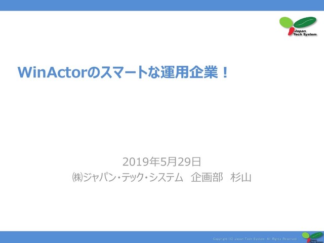 1. Copyright (C) Japan Tech System. All Rights Reserved. はじめに •