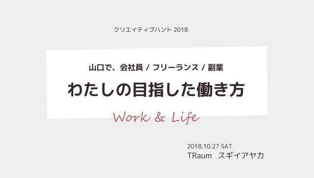 わたしの目指した働き方 スギイアヤカ 2018.10.27 SAT TRaum 山口で、会社員 / フリーランス / 副業