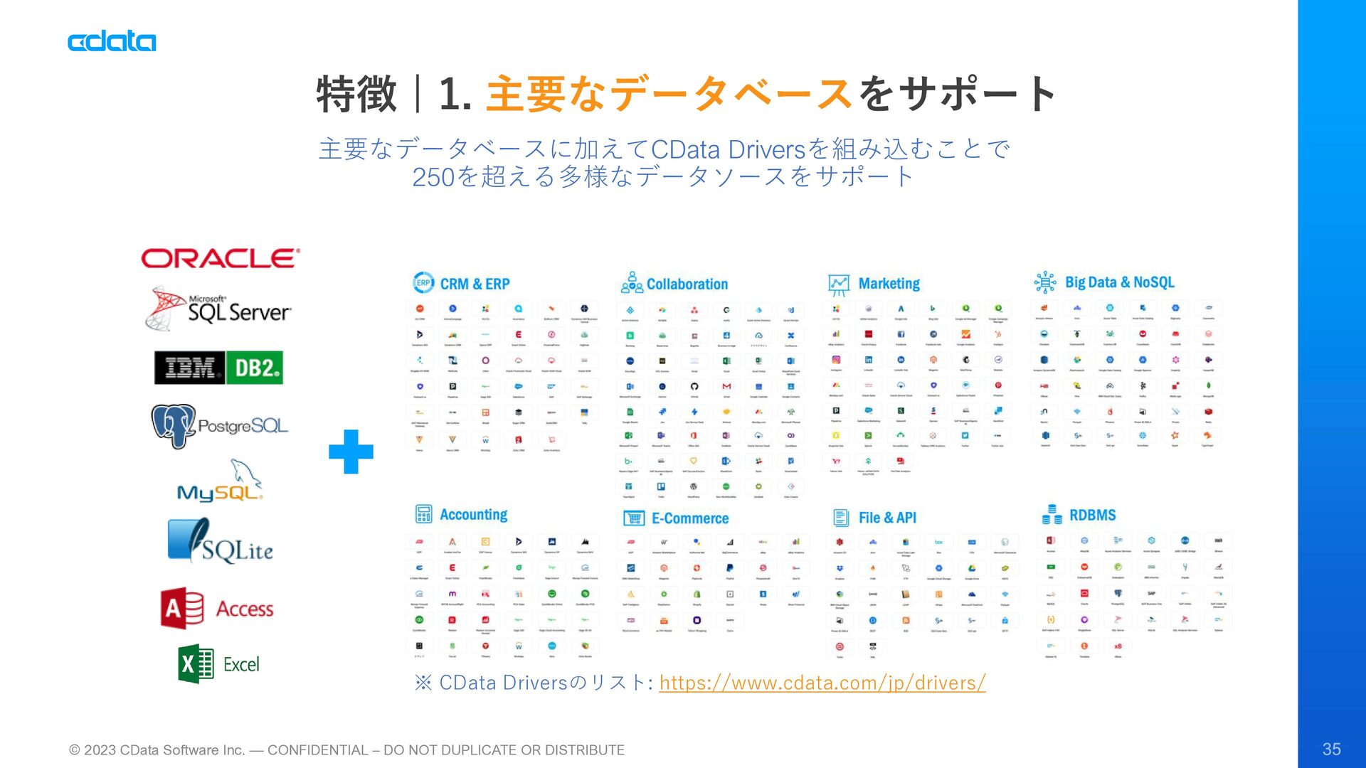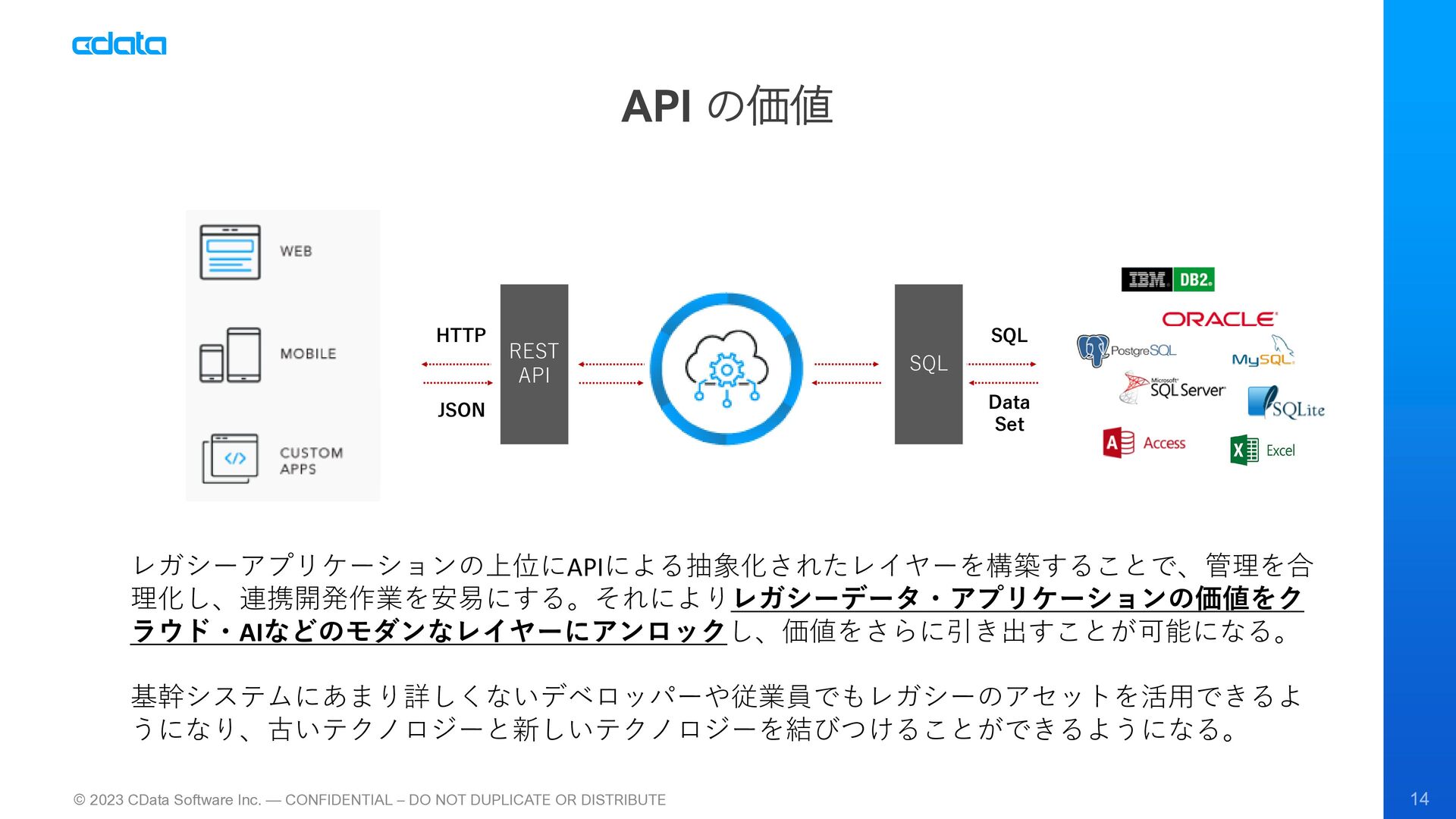 とはいえ自社の基幹システム、例えばOracle、DB2 for IBM I、HiRDB などへの直接のアクセスは簡単に対応できる要素ではありません。